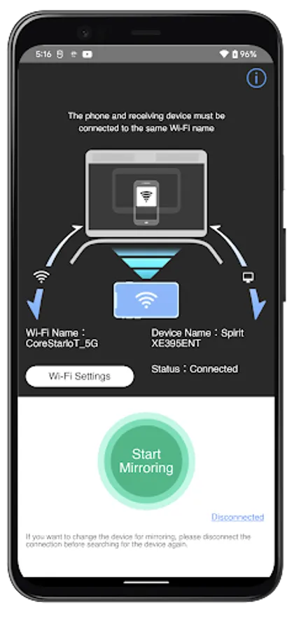 3. Click the "Start Mirroring" button to complete the screen mirroring process.