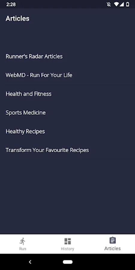 - After opening the app, select Articles on the bottom navigation view.