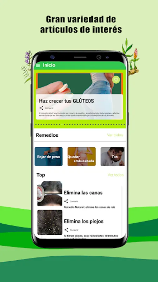 In this application you will find a large number of Natural Remedies for everything you need, we explain how to use medicinal plants, we give you healthy tips to fight various diseases naturally and best of all: all natural and no drugs that have side effects.