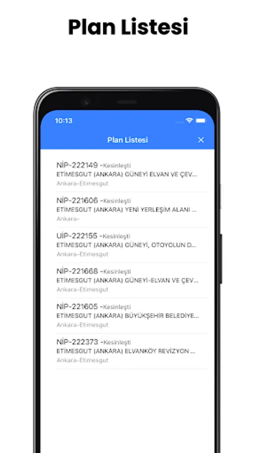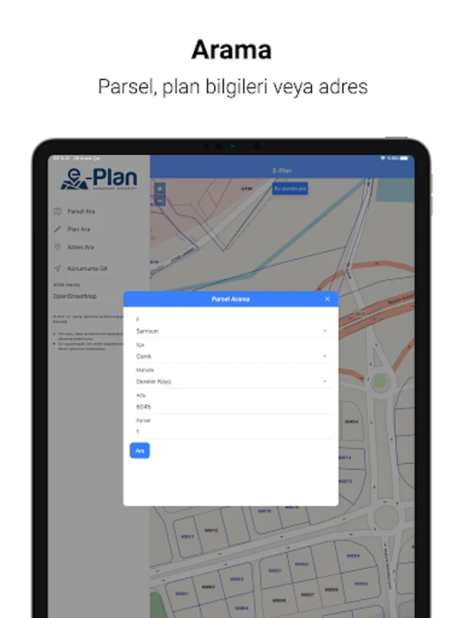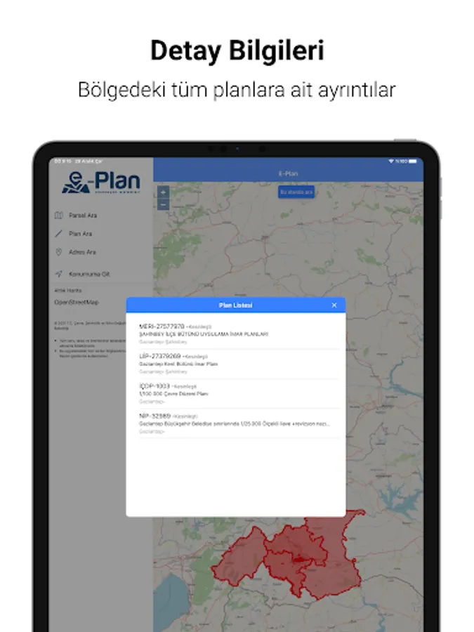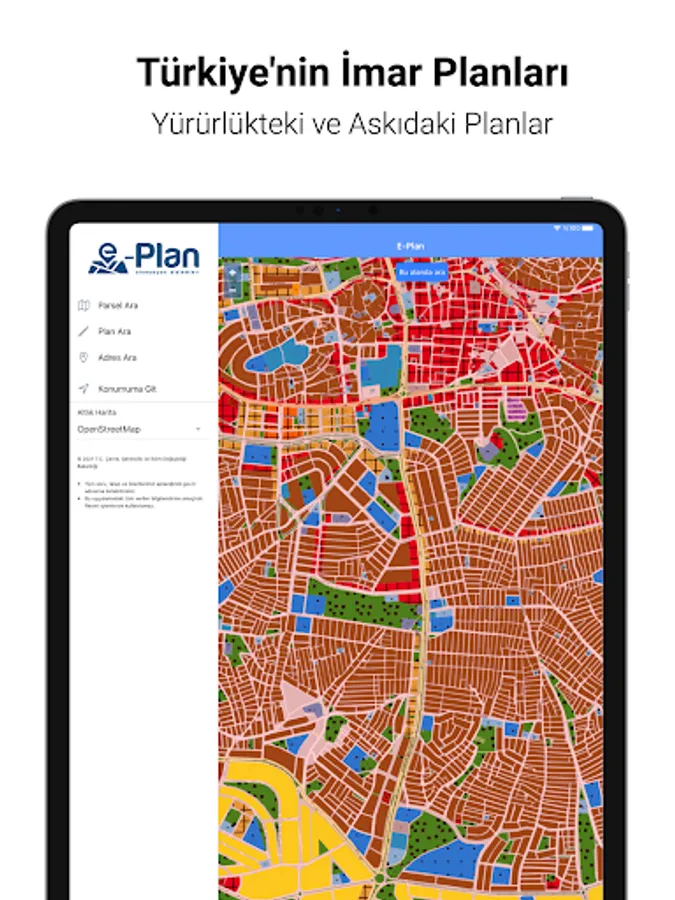 T.R. Developed by the Ministry of Environment, Urbanization and Climate Change; the production, presentation, service and archiving of the spatial plans in accordance with the standards and the operation of the plan processes are carried out as a whole system; It is the mobile application of geographic information system based E-Plan Automation Systems.
