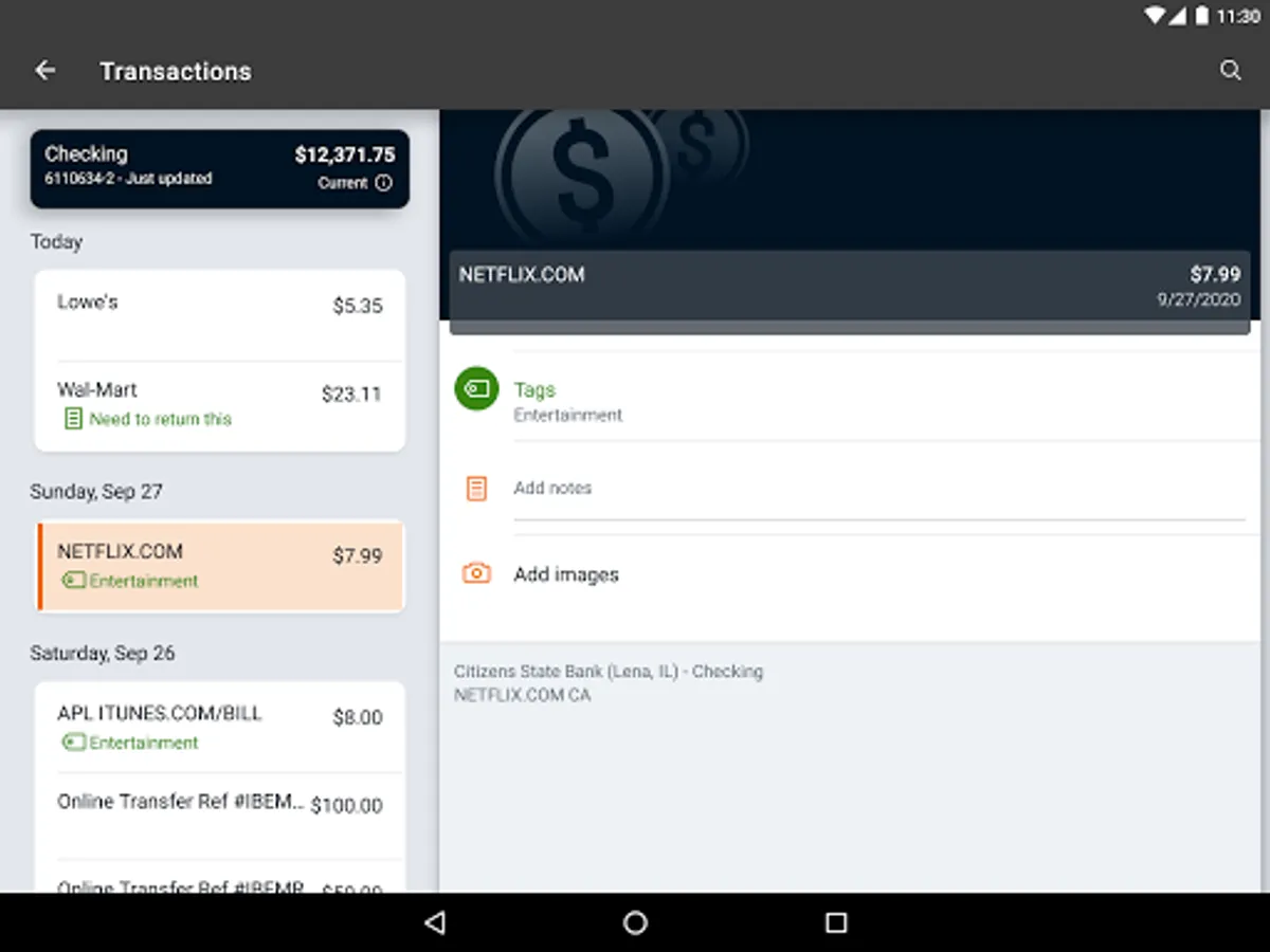 Keep your transactions organized by allowing you to add tags, notes and photos of receipts and checks.