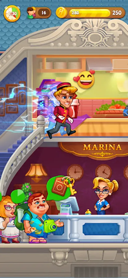 Do you wanna be a hotel tycoon? You can completely develop your hotel business in this hotel simulation game offline. Earn money and upgrade hotels, kitchenwares, food services, cleaning room services, ... as soon as you have enough coins and gems. Not only money, more likes, more customers will be attracted to your dream hotel.