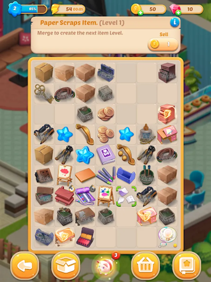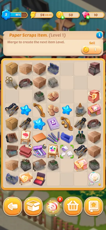 Merge and collect objects that've been hidden in the city, they might come in handy later. More items will be discovered as you expand the city. Use them to repair the stores, houses, or sell extra items to make sure every shop has the best look.