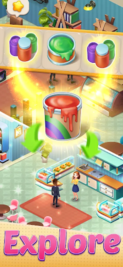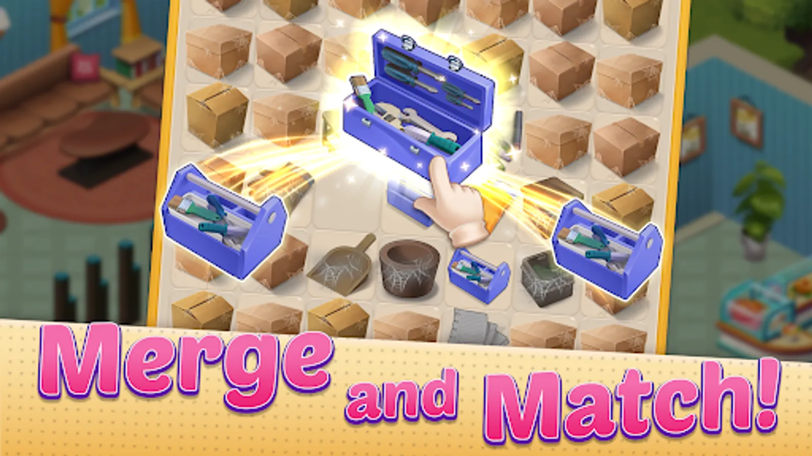 Merge 2 similar items to help restore the piece, fix the broken things and clean up the stores and buildings, and choose the designs that match your style. Use the required items to complete the tasks and collect coins and stars to unlock new designs.