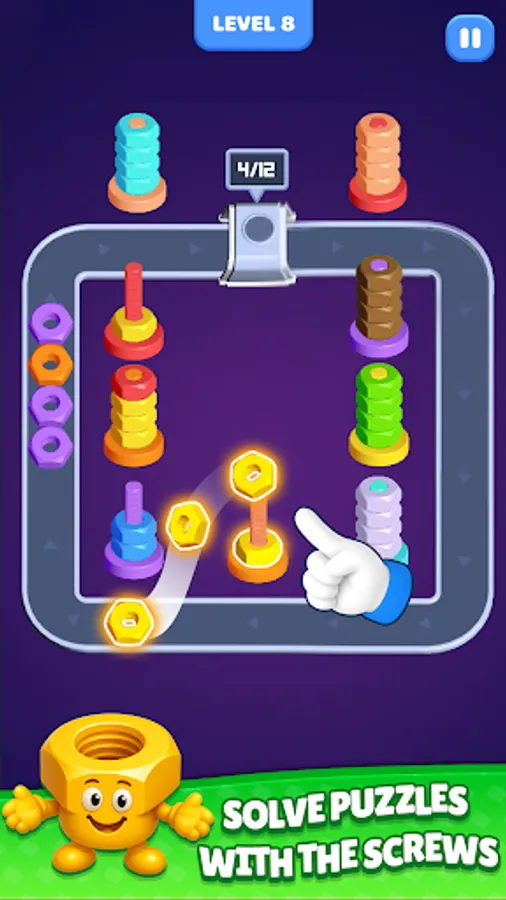 Perfect for fans of sort games, conveyor puzzles, nut-and-bolt mechanics, and relaxing brain-teasing challenges.