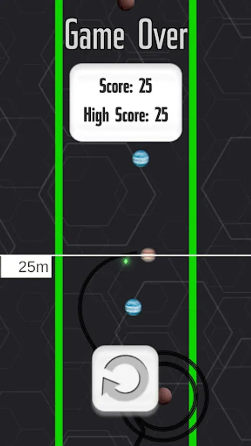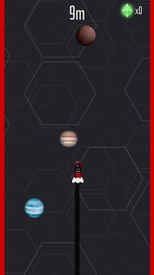 Holding a single finger to the screen will start the Swing Maneuver if you are in range of the obstacle. When you let your finger up, the swing maneuver ends, and you continue flying forward on your journey. You can also collect gems on your flight. The gems will allow you to purchase new ships, but be warned... The primary goal is the highest altitude, swinging around to grab a gem may lead to your death! Can you identify a "safe gem grab" while flying?