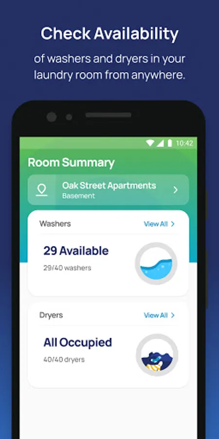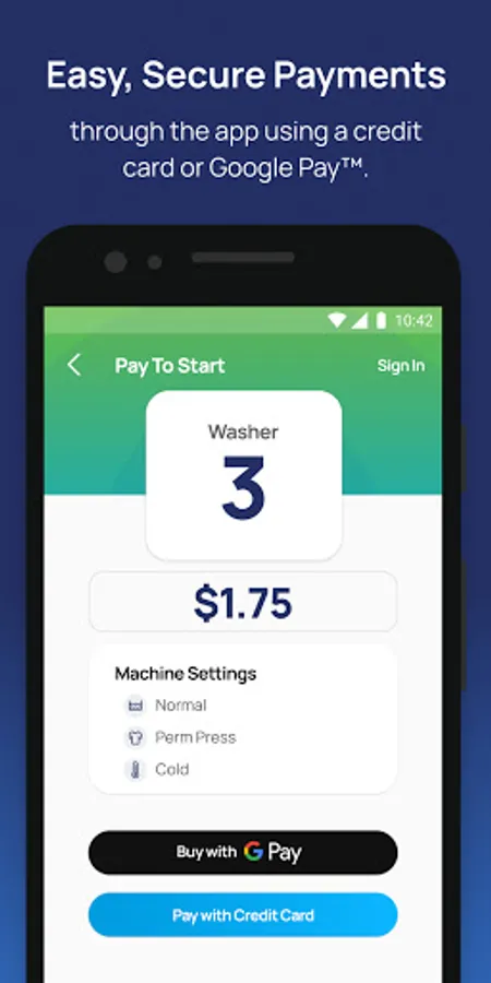 Laundry is easier with the CSC ServiceWorks Go Laundry app. The app enables you to pay for a wash or dry using a credit card or Google Pay™. It makes it easy to check machine availability before you head to the laundry room, and notifies you when your clothes are ready.