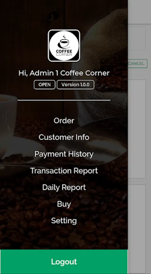 from this admin app, you can easily control your transaction because of every single one of your Coffee Corner transaction