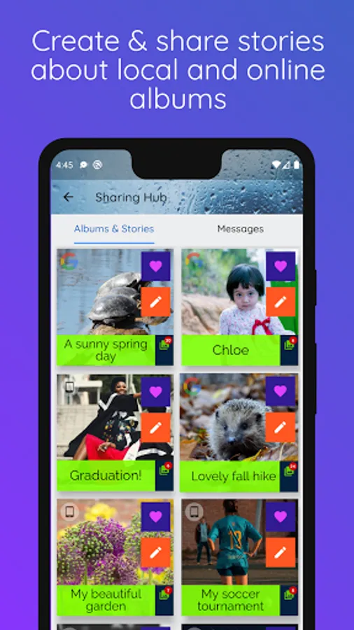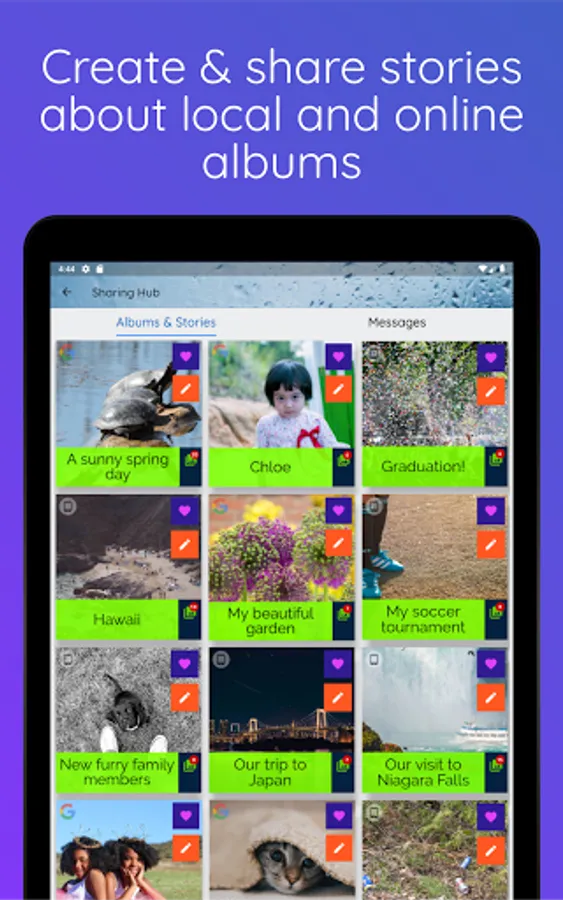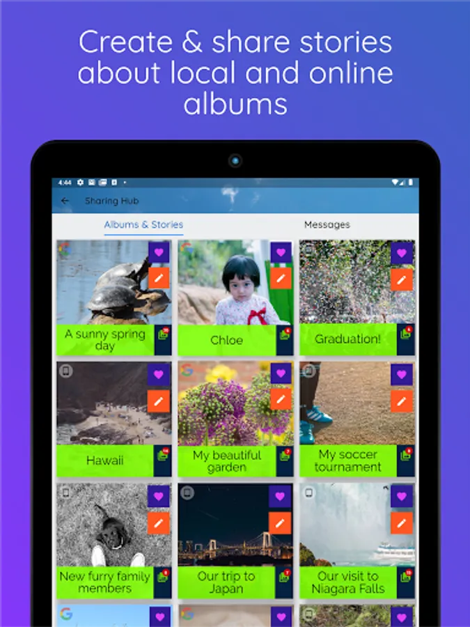* create and edit stories from anywhere about shared online albums to share with loved ones you can't see in-person