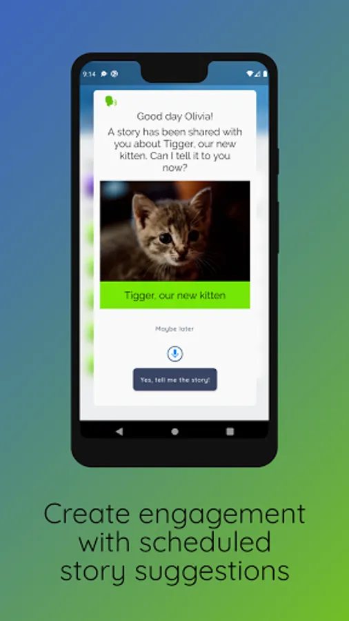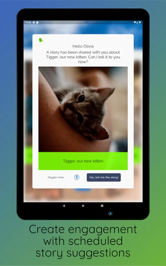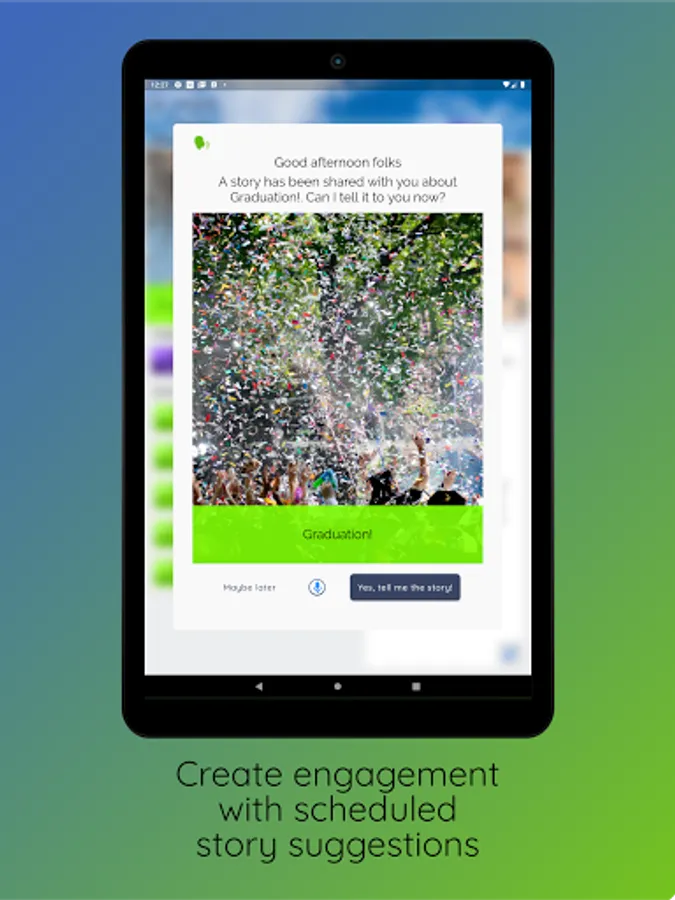 * if your loved one has trouble using tech, you can set up stories to play at scheduled times of day - all your loved one needs to do is say 'yes' when asked if they want to enjoy a story