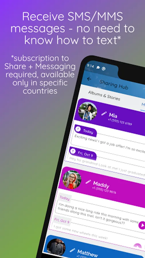 * get a Folktells phone number for a senior so they can receive text & photo messages from anyone so they never miss out on the in-the-moment excitement (Canada, UK, USA only)
