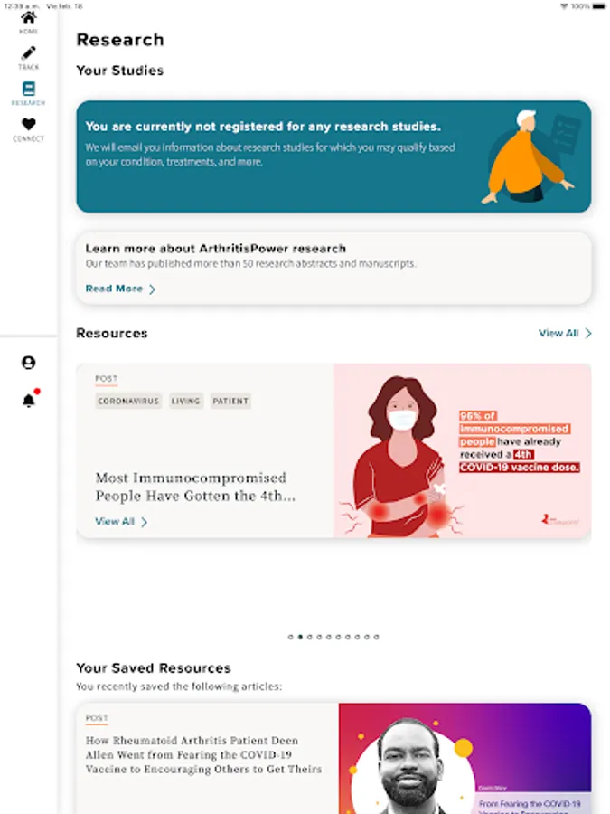 The ArthritisPower registry was developed to empower people with arthritis, bone, autoimmune, and inflammatory skin diseases to fight back by participating in real-world, patient-centric research. With this app, you will be able to track YOUR symptoms, health and wellness using surveys, completing validated patient reporting outcomes questionnaires and using data captured by your phone (biosensor data) to monitor well-being. ArthritisPower enables participants to also track medications, medical history and to share health information with care providers, family members, etc. at their discretion. ArthritisPower has the ability to run on a smartphone App and on the web for PCs, giving participants the ability to stay connected whenever they want. Come join the fight and help others as you help yourself, track your health and use your data to help combat joint, bone and skin diseases such as rheumatoid arthritis, osteoarthritis, psoriasis, psoriatic arthritis, ankylosing spondylitis, lupus, gout and other conditions.