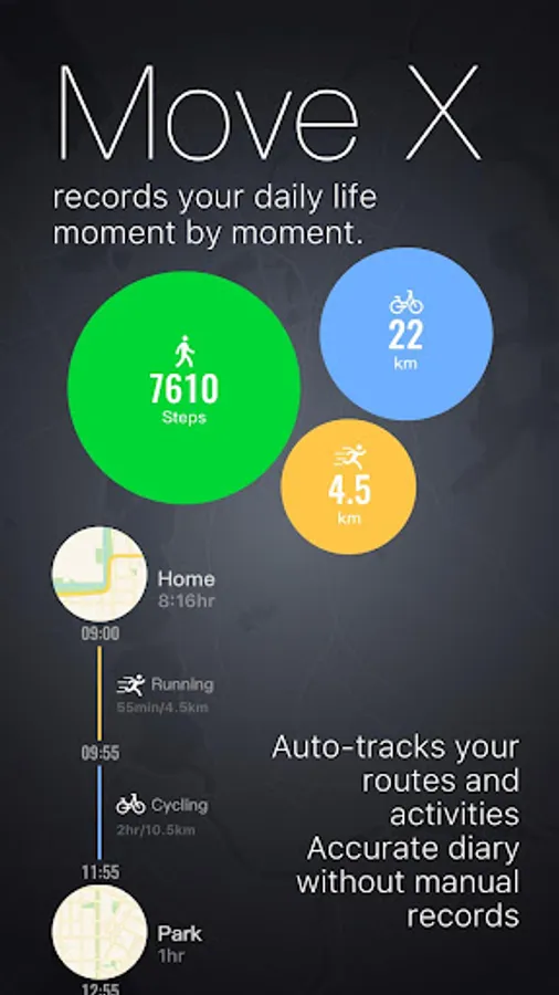 Free GPS log/journal on your phone! Move X helps you to know yourself better. You will have well-scheduled time planning, improved work efficiency and a health life.