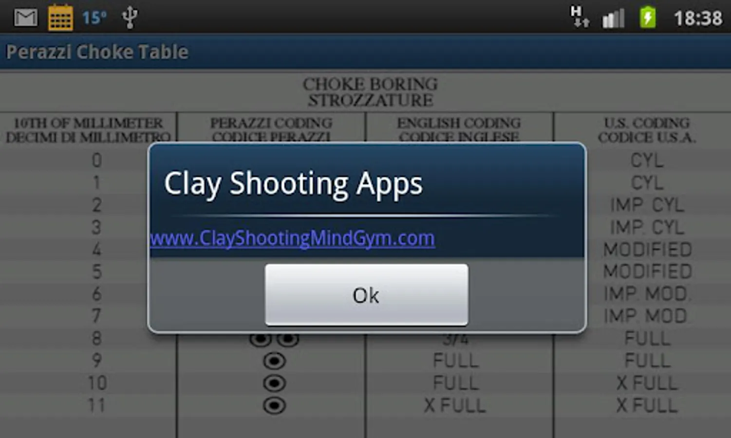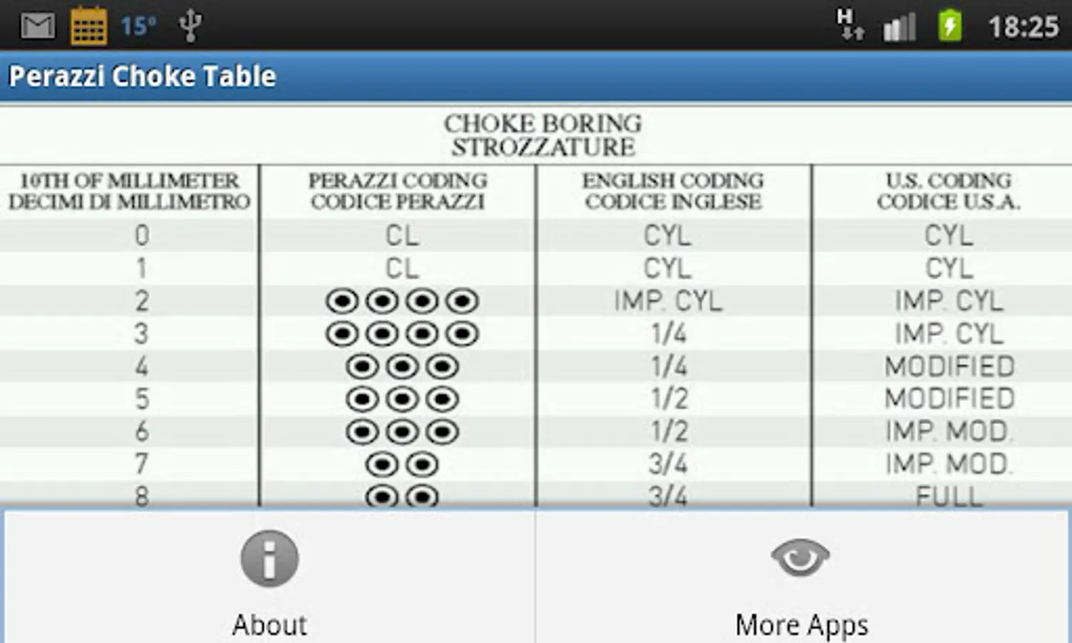 Perazzi choke camparison table between Perazzi coding, English and US choke coding.