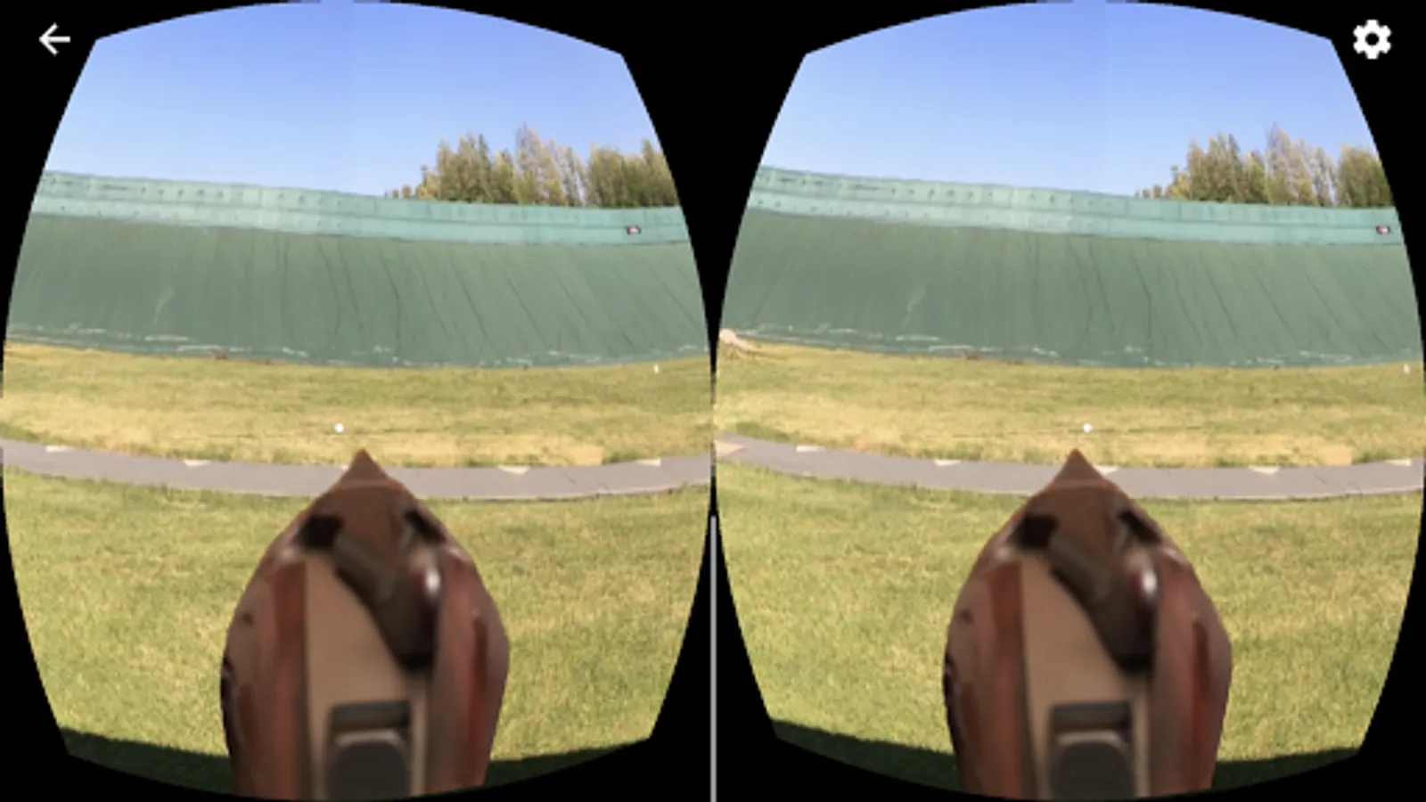 The target can be shot by using the magnetic input on the Google Cardboard VR. For a more realistic experience, the App uses real life shooting range changing background and shot sound.