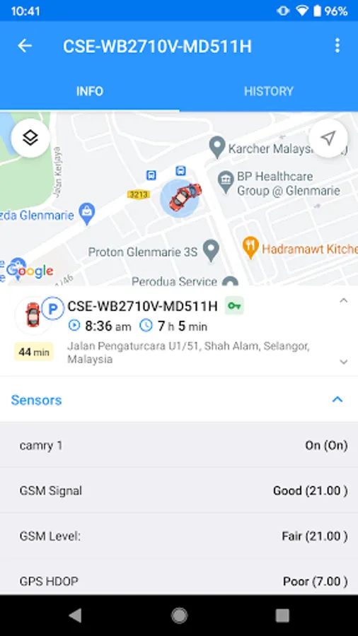 Tracking mode: Monitor precise location and parameters received from a particular unit.