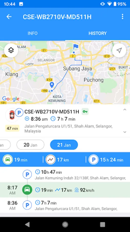 Events control: Use extended information on trips, parkings, fuel fillings/thefts and sensor values to learn the chronology, duration and the exact number of events in the “Timeline”.