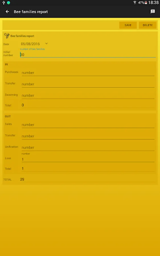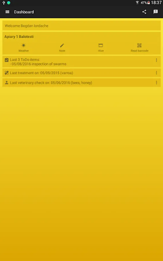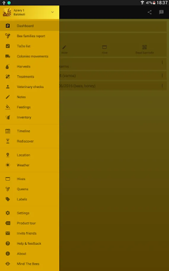Apiary Book allows recording on mobile phone of information on the number, health and maintenance of each bees family, treatments carried out, and other operations in the field of beekeeping.