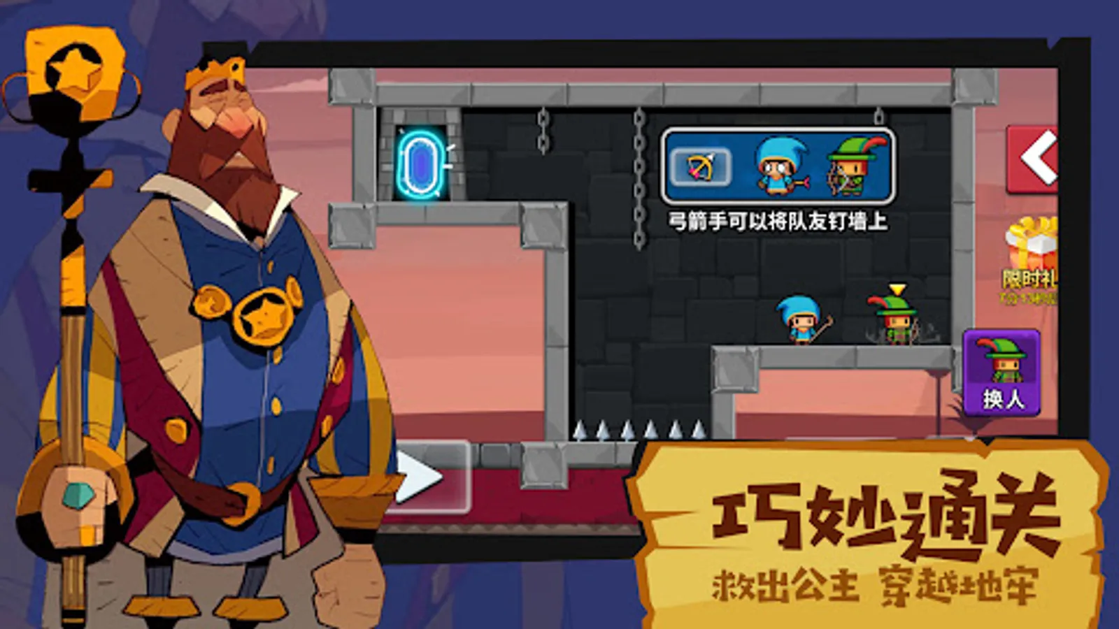 A very interesting brain-burning puzzle-solving mini-game, with an open world with a high degree of freedom, rich and interesting challenge levels and simple and straightforward operation pages, allowing players to experience the joyful gameplay full of jokes. In the game, players need to control the three characters of mage, archer and warrior to break through the level. Not only the weapons of the characters are needed, but also monsters must be defeated to avoid traps. There are two different characters, both of which have different skills and will produce different effects. One is archery, and the other can freeze the opponent. You can drag multiple props to complete interactive operations and trigger multiple hidden event content. And there are many different maps that can be easily unlocked. Each level hides different easter eggs, and each challenge will give you new fun. In addition, there is also a reminder function in the teammate's crushing defeat mini-game. When the player encounters difficulties in a certain level, the reminder can help you pass the level easily. What are your favorite friends waiting for? Come and feel the difference Go on an adventure!