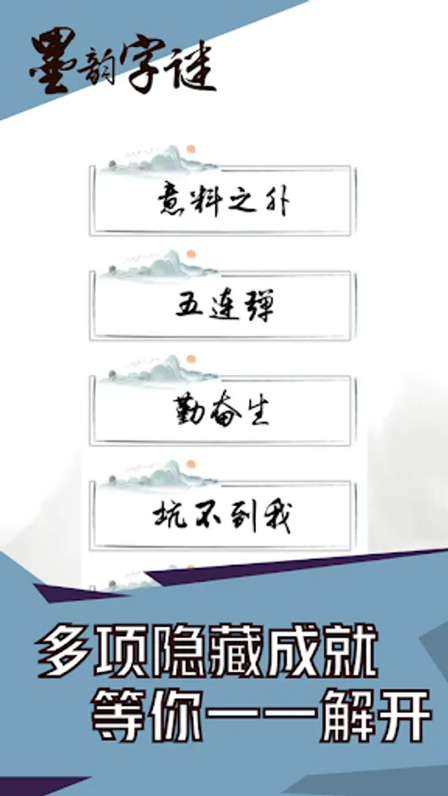 Each level is a puzzle full of the magic of Chinese characters. Use these Chinese characters skillfully to challenge a level of puzzles composed of Chinese characters. During the decryption process, you can experience the profound cultural heritage contained in Chinese characters and feel the profoundness of Chinese characters.