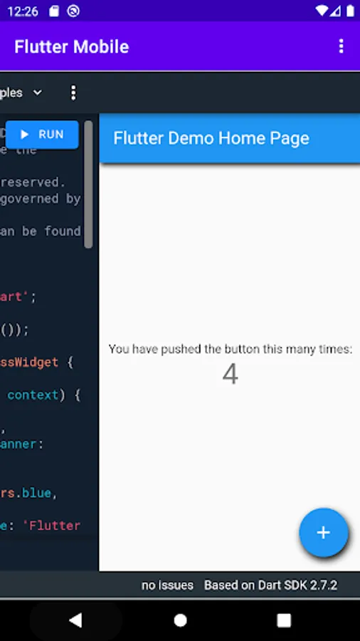 Mobile Flutter ( DartPad ) can run Flutter application as well as can show UI or Graphical output of the Flutter application. Dart code can be executed with it.