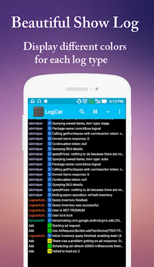 * View log with more level: debug log, error log, info log, warn log, verbose log ...