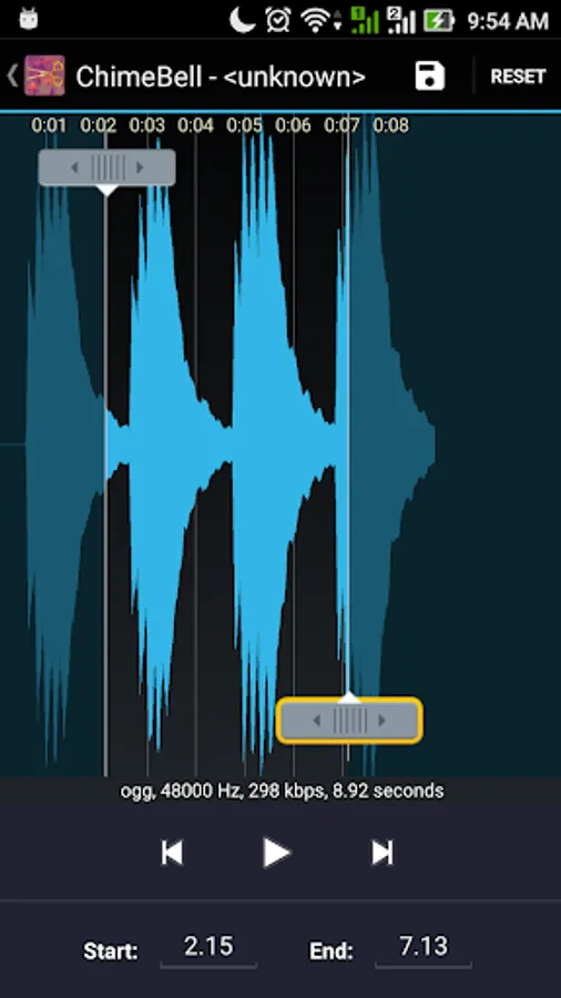 ♥ Split, Cut the mp3 files on your devices, made a unique ringtone, notification sound, alarm sound, audio file ...