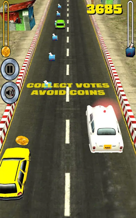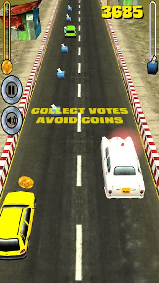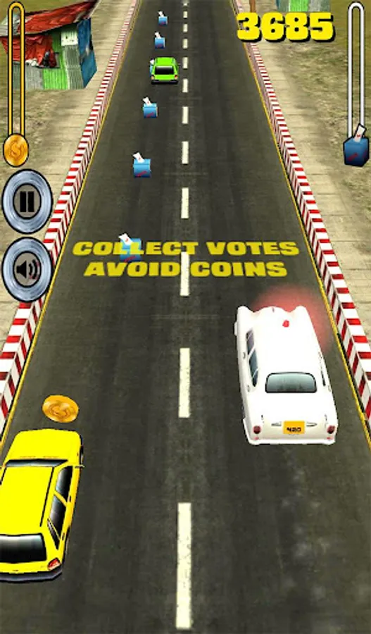 Player starts with an Auto-rickshaw and they will get promoted higher roles taxi driver, politician etc based on their driving skills. Avoid hitting other vehicles, dangers on the road and pick collectibles. If you hit other vehicles, police will chase you.