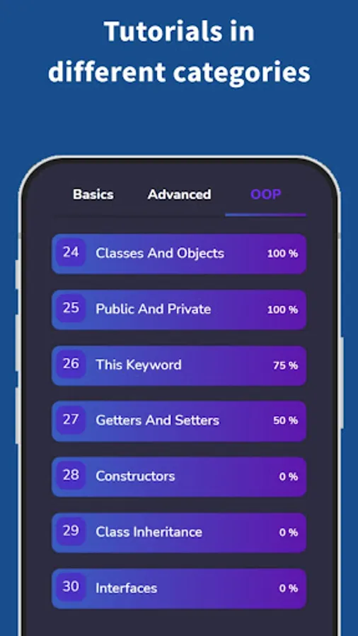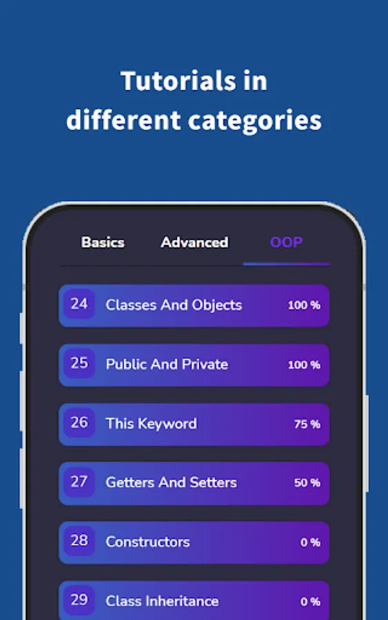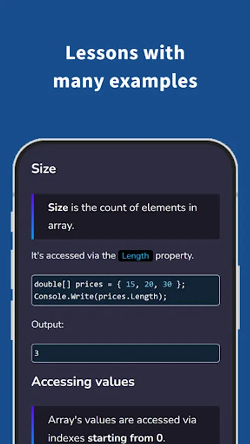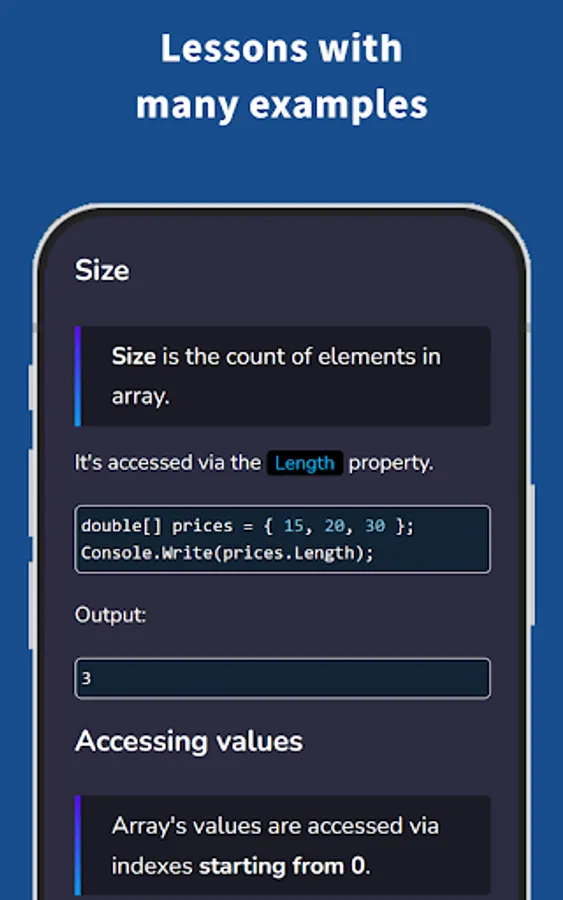 The app allows learning C# offline. You can learn C# on the go through your smartphone or tablet.