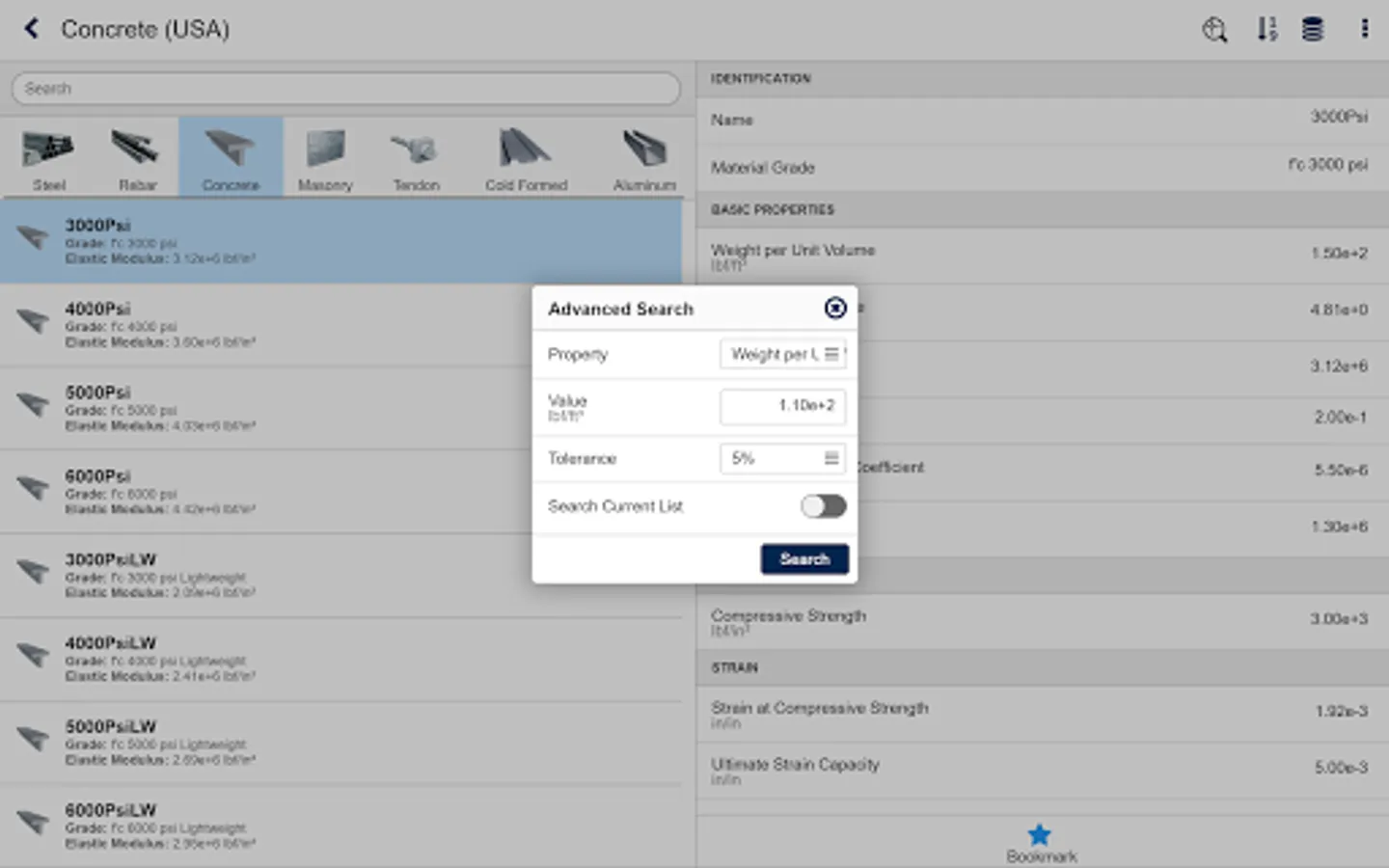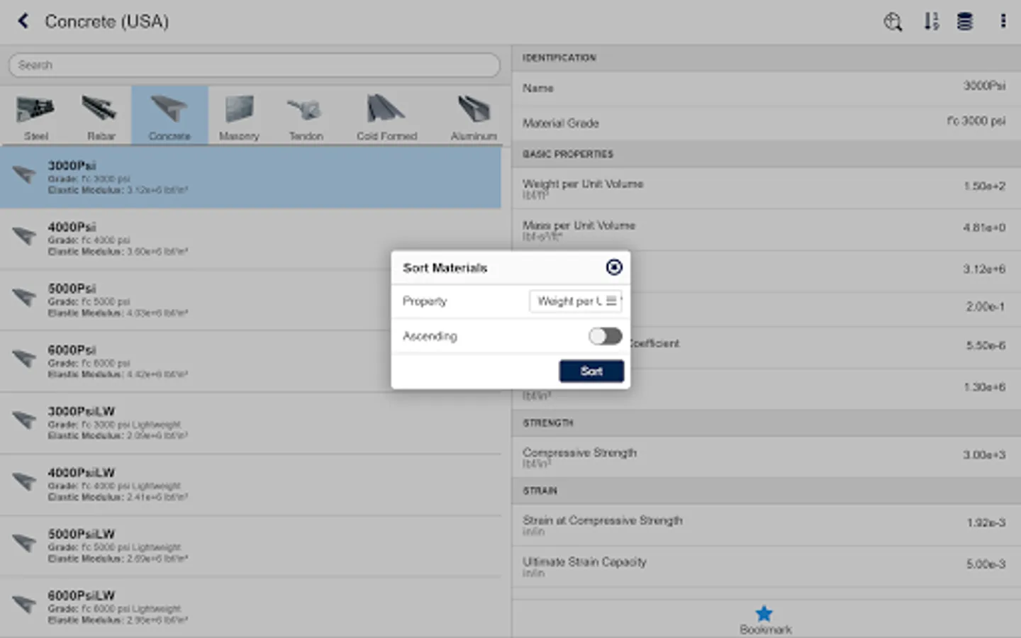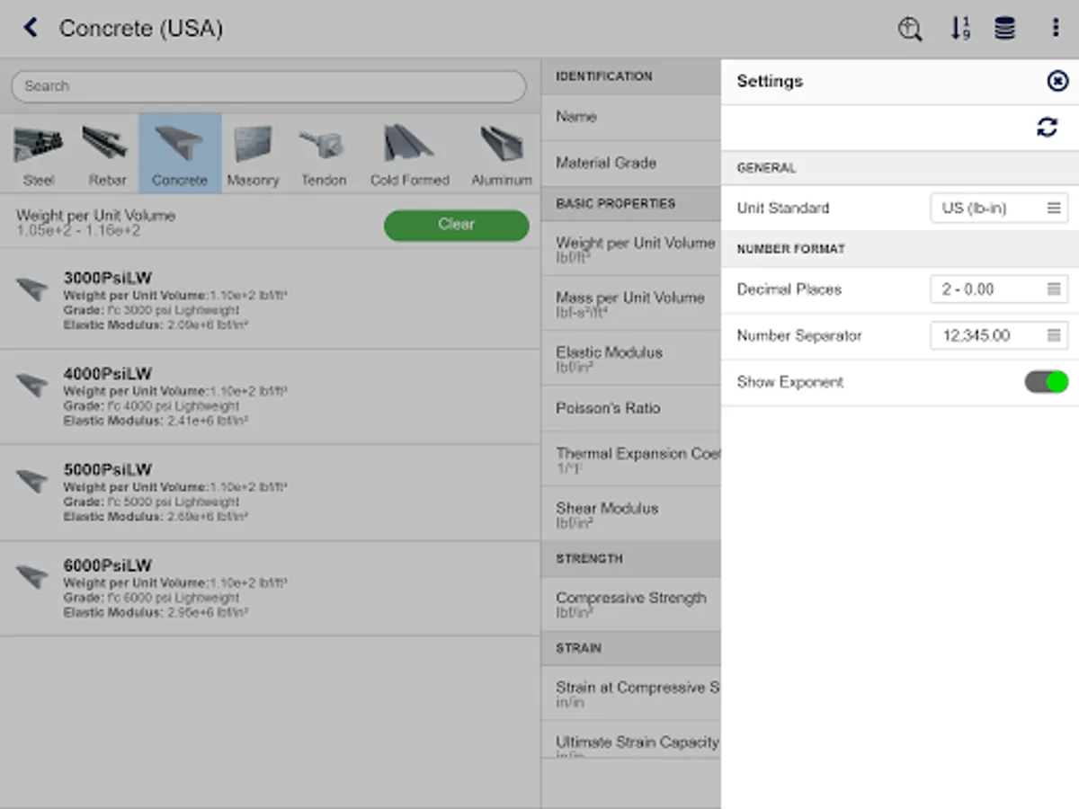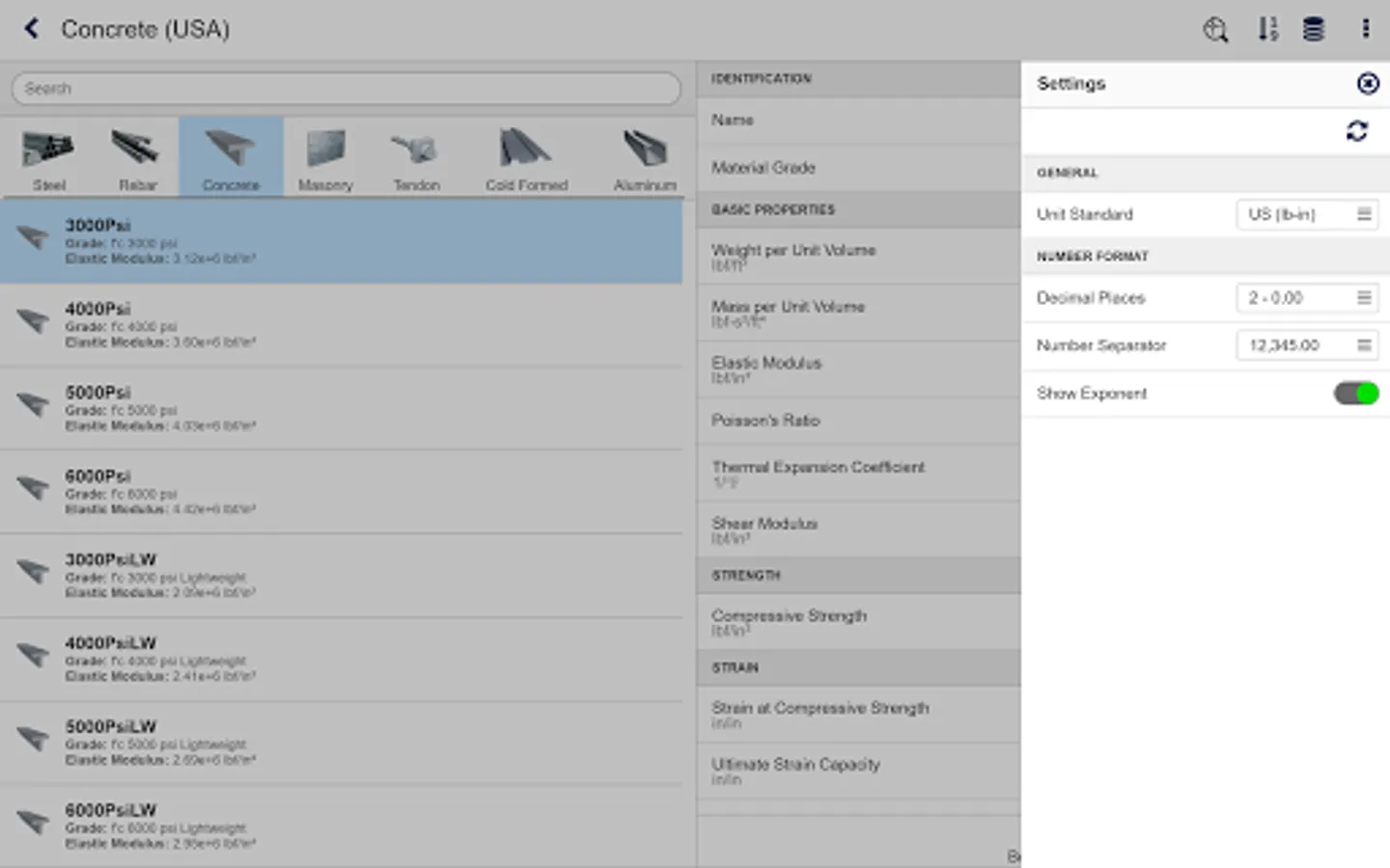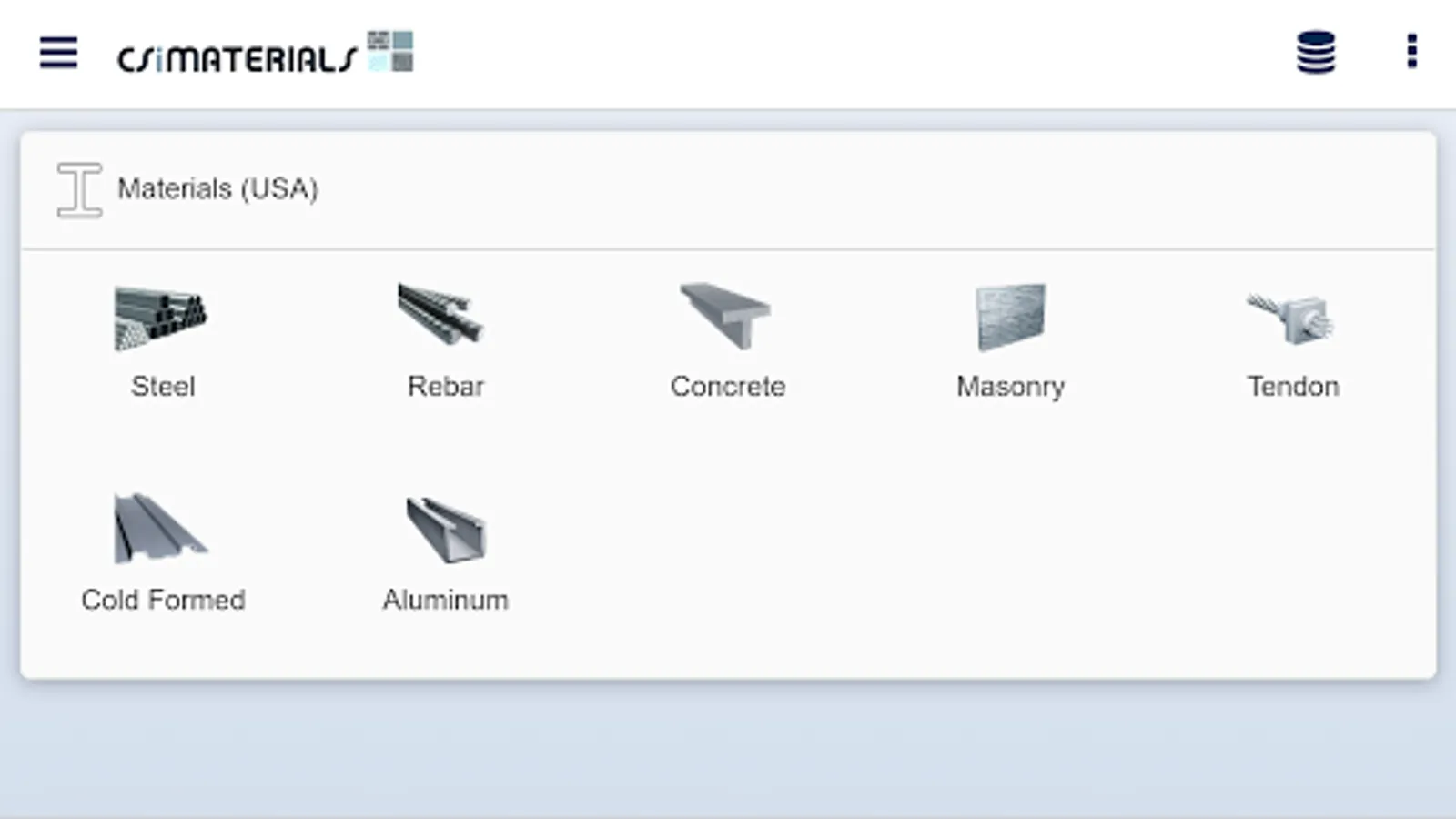 CSiMaterials is an app that contains construction materials for structural designs. It allows searching, sorting and viewing of materials based on various material properties.