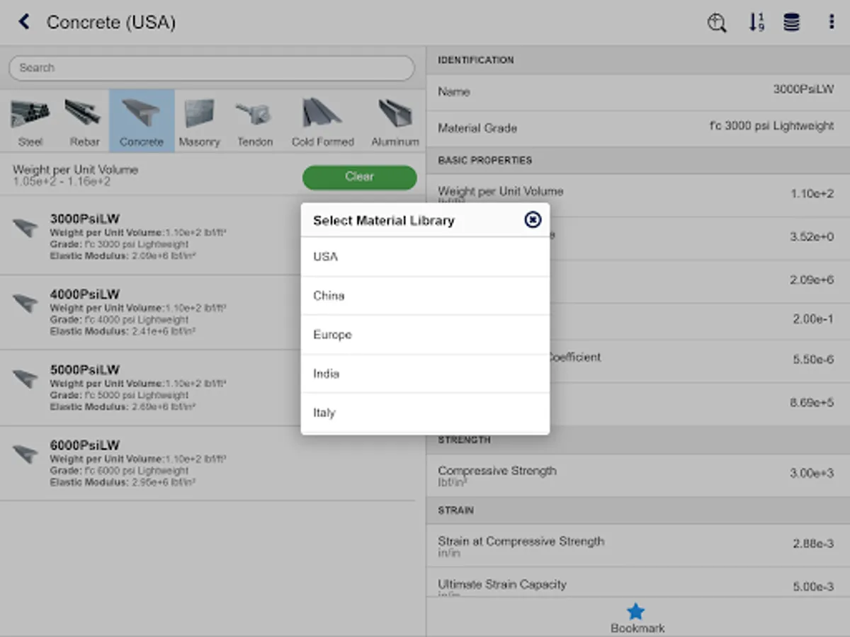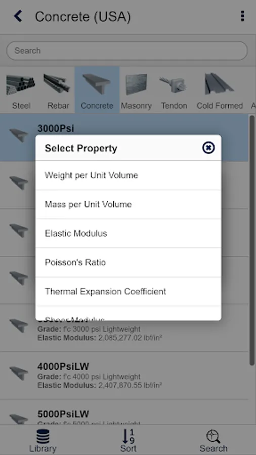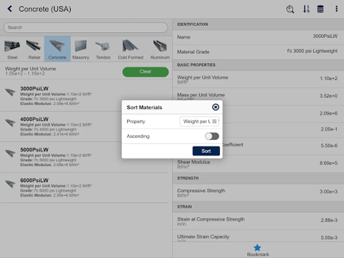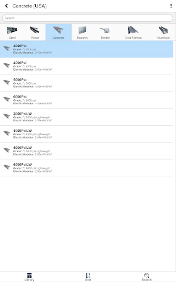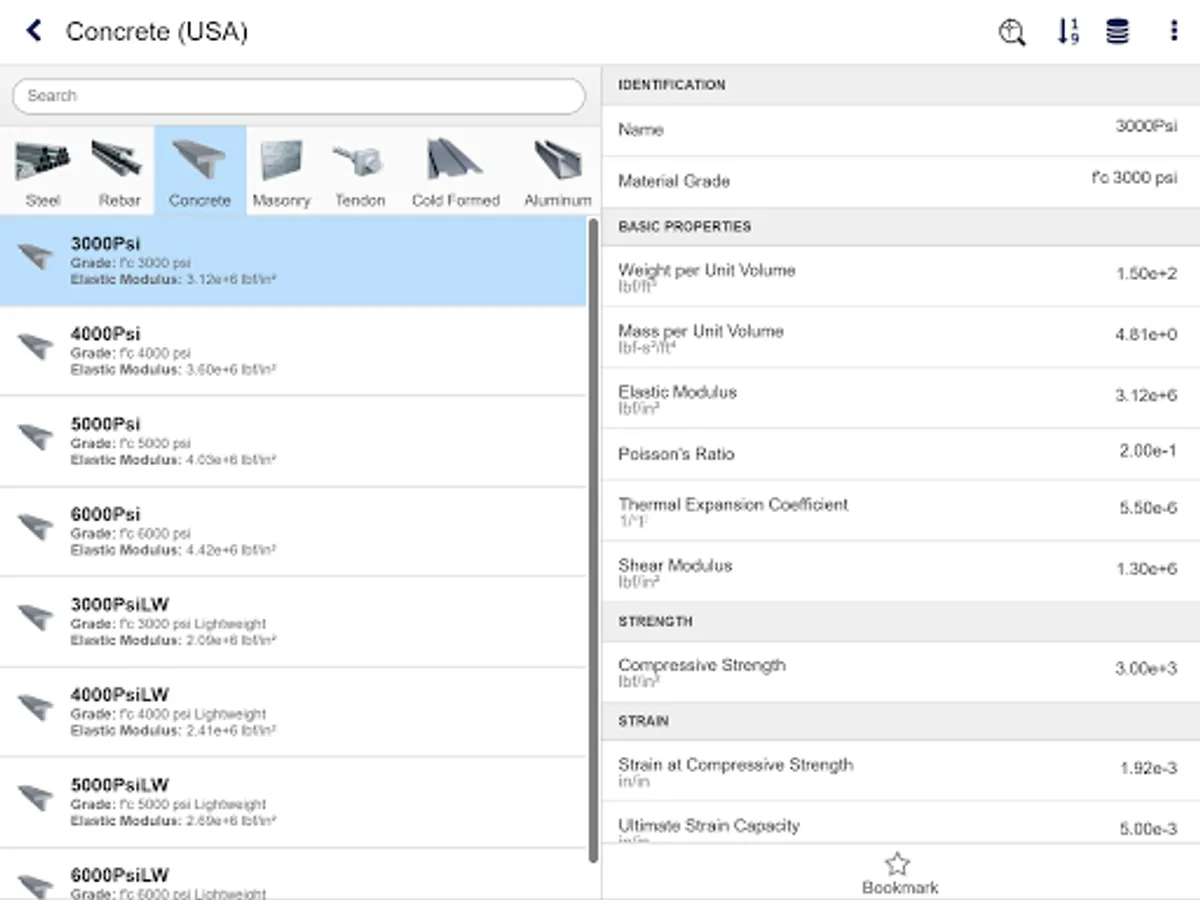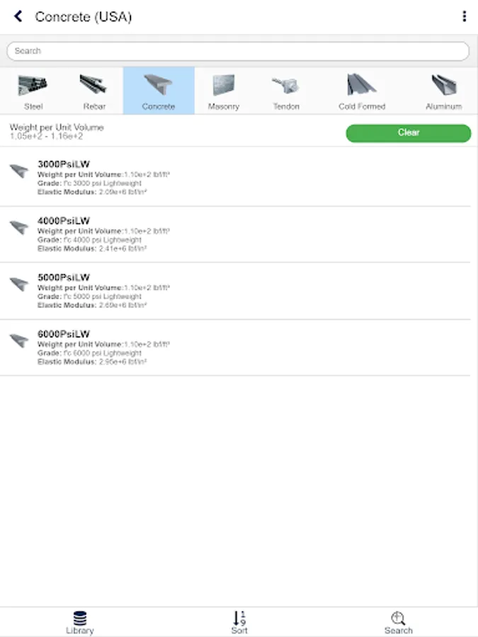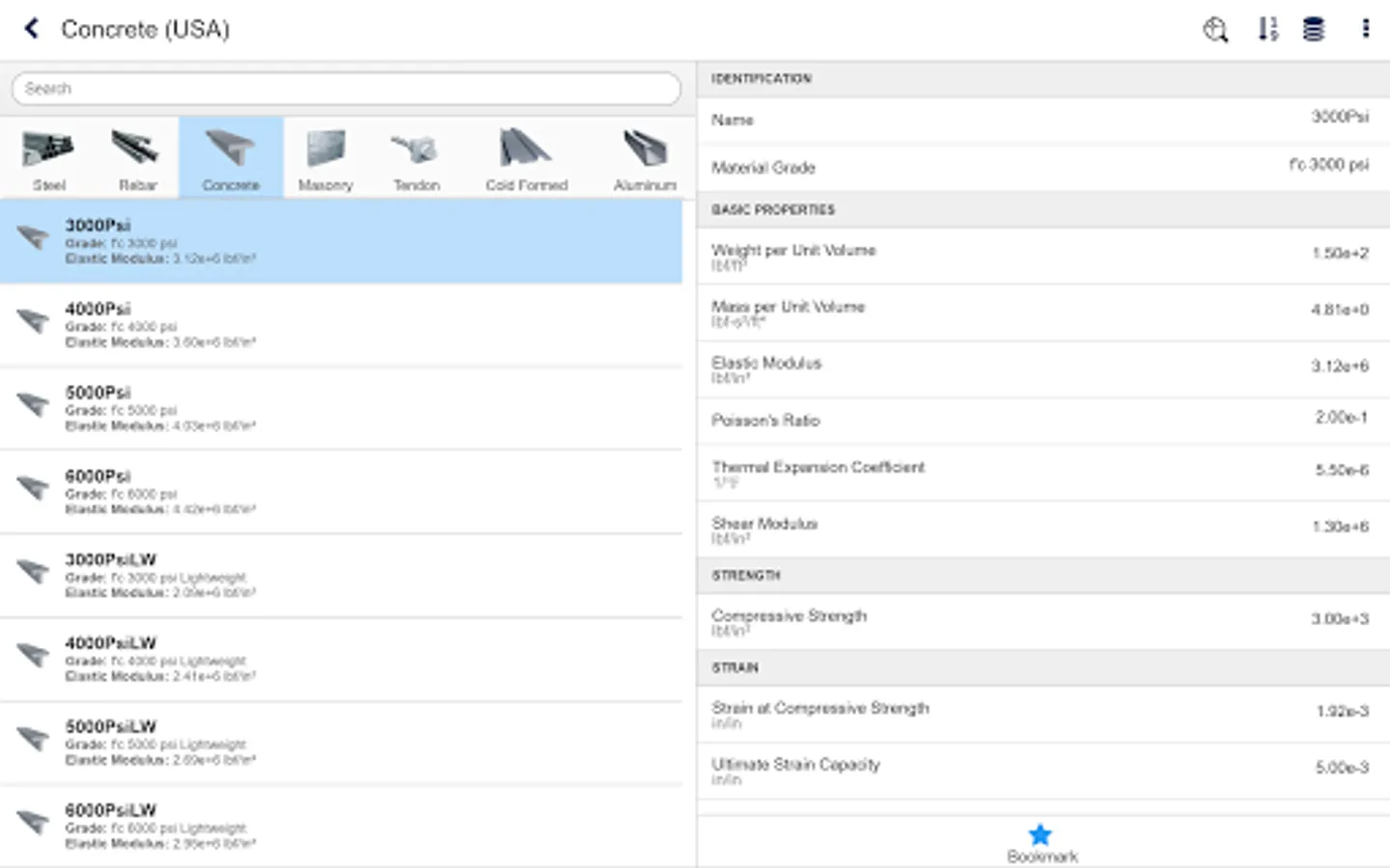 CSiMaterials is an app that contains construction materials for structural designs. It allows searching, sorting and viewing of materials based on various material properties.