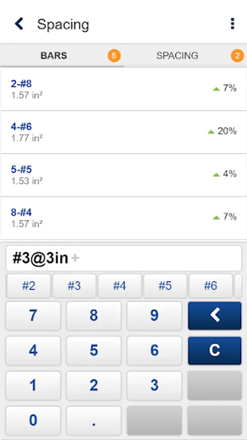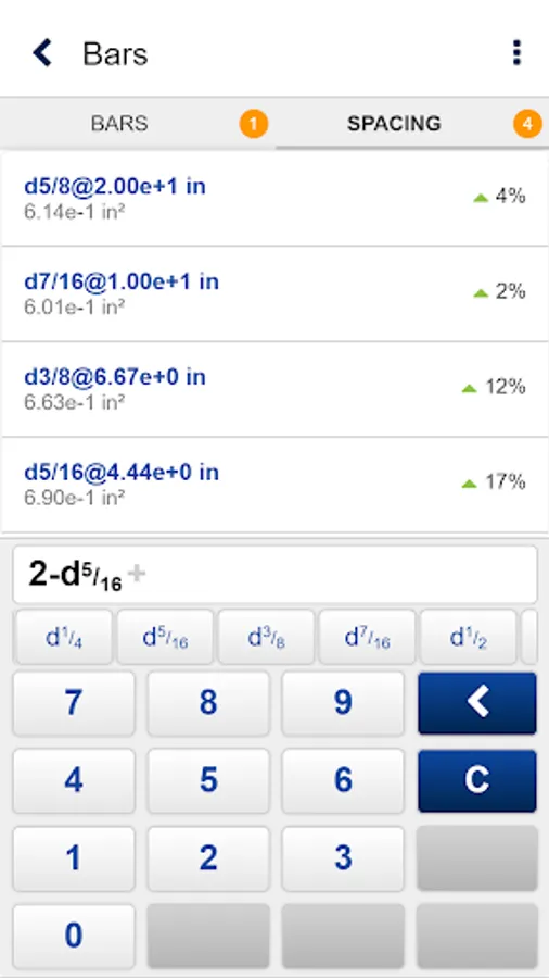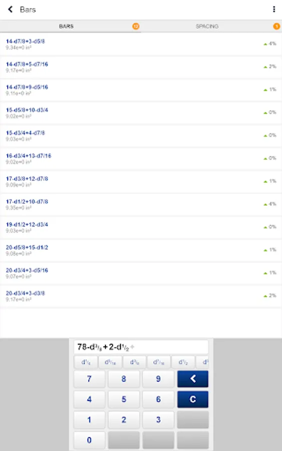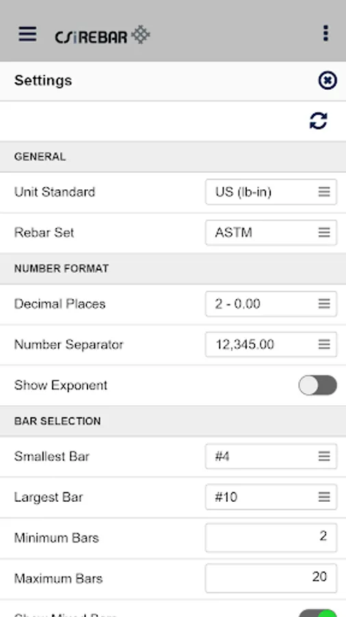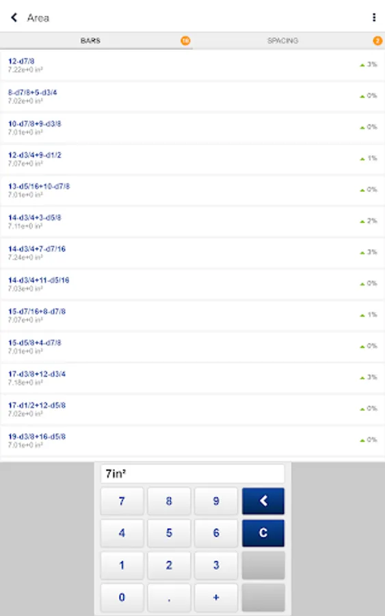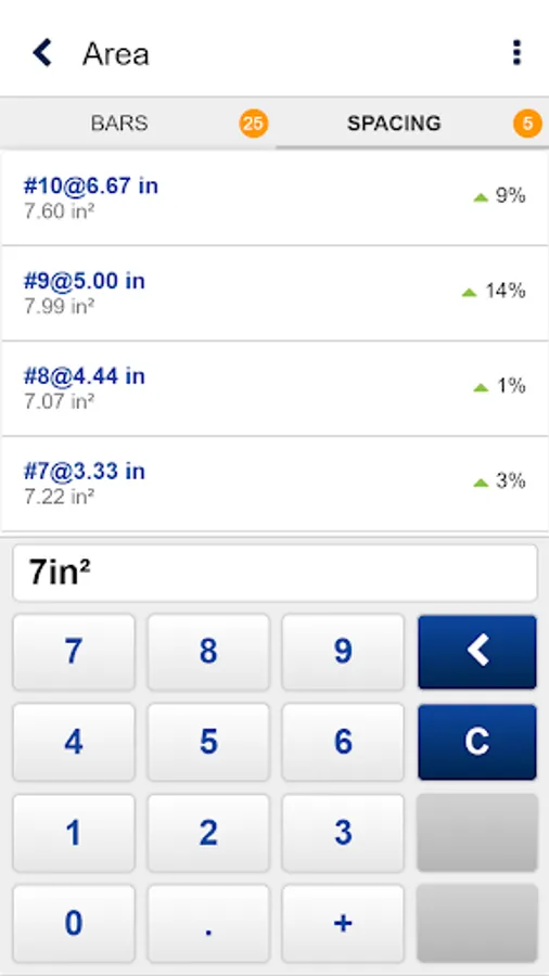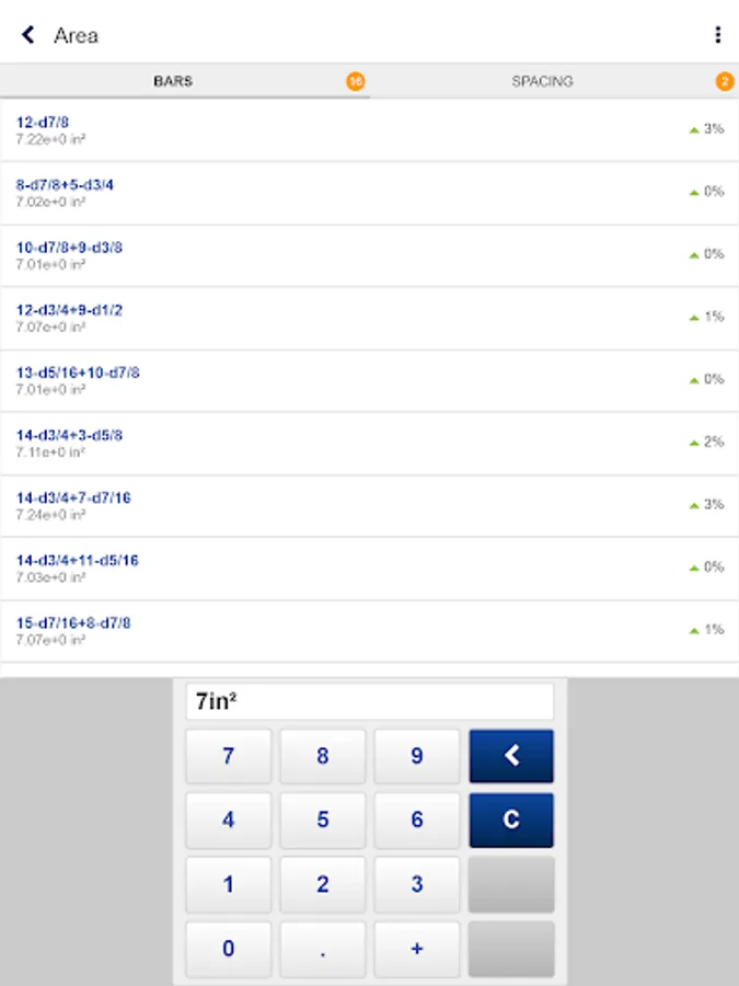 CSiRebar is an app that conveniently converts between combinations of bar sizes, steel area, and spacing requirements.