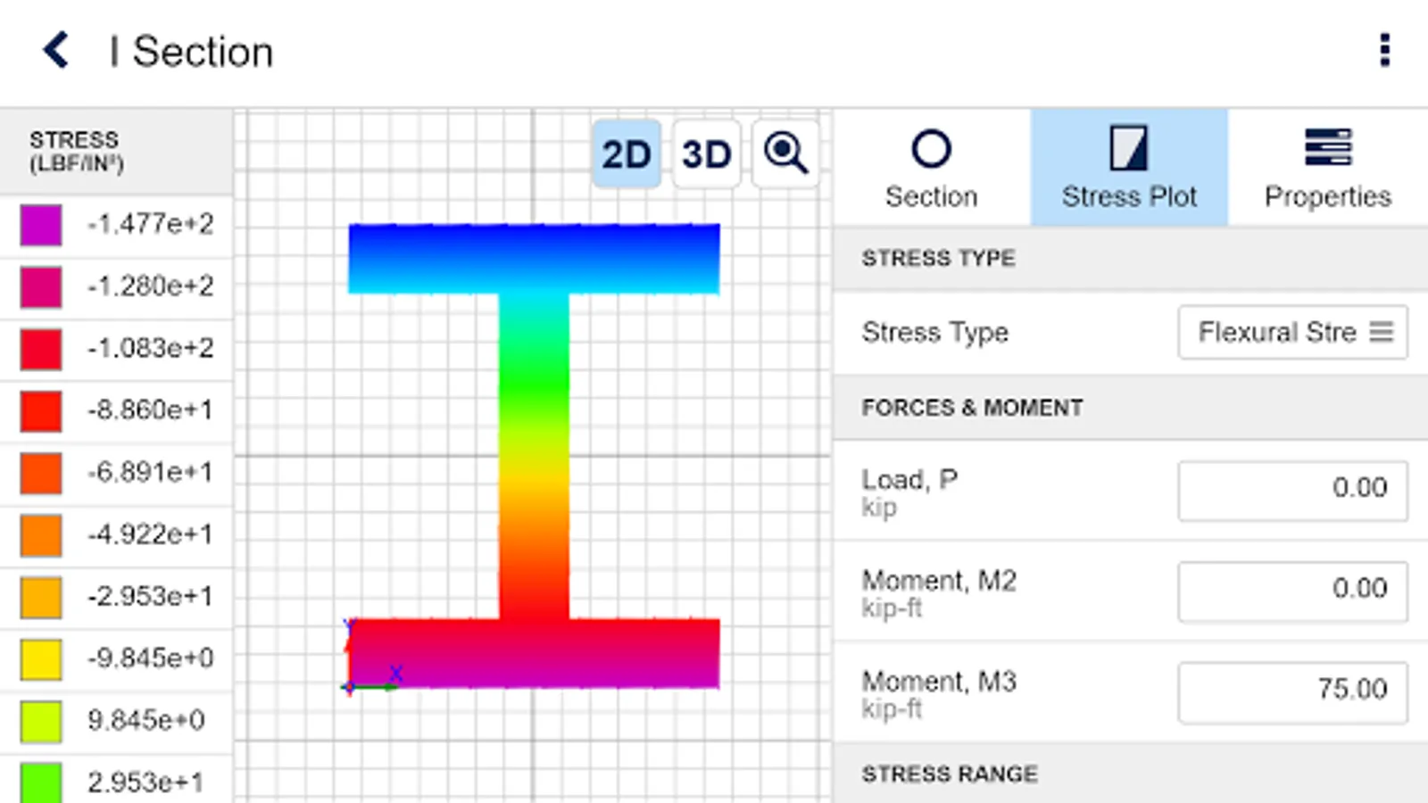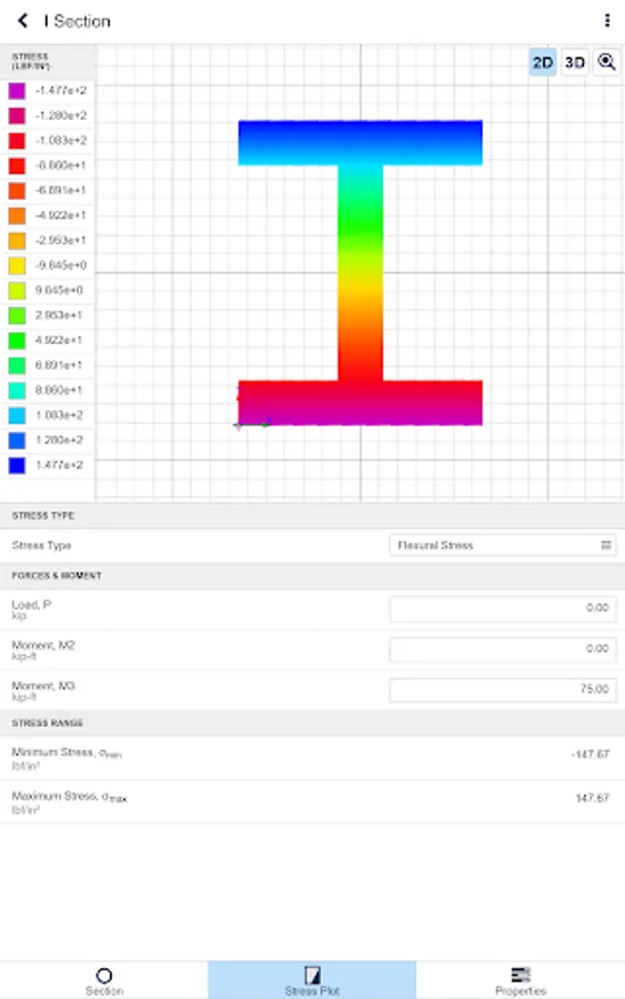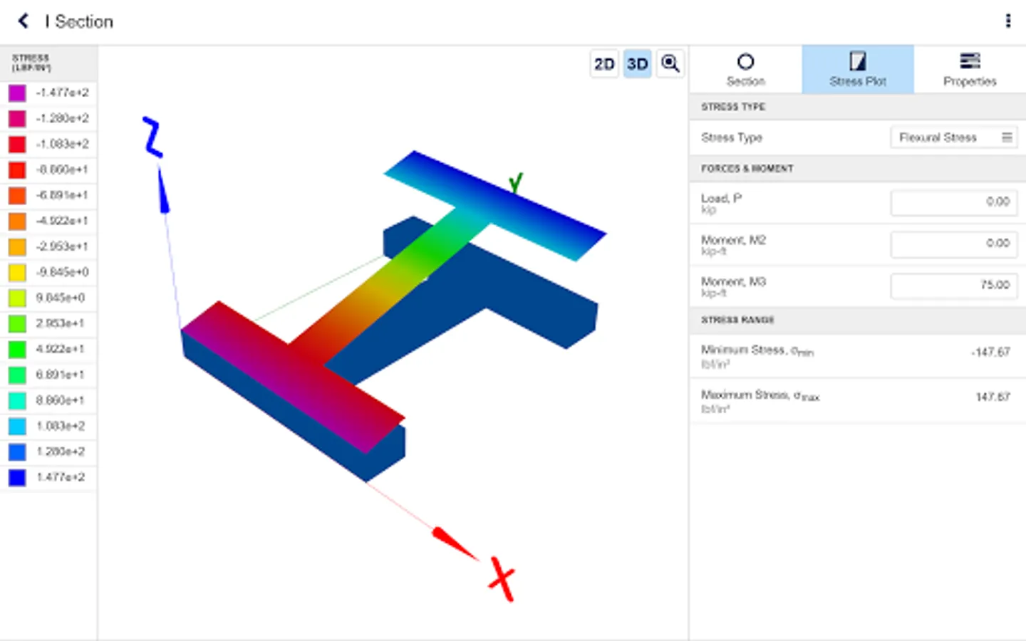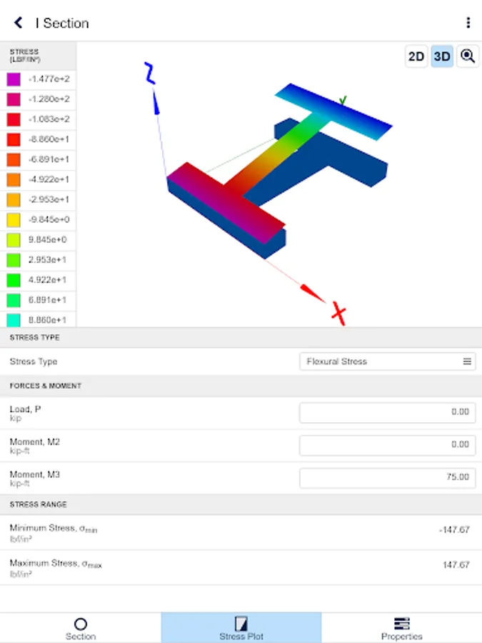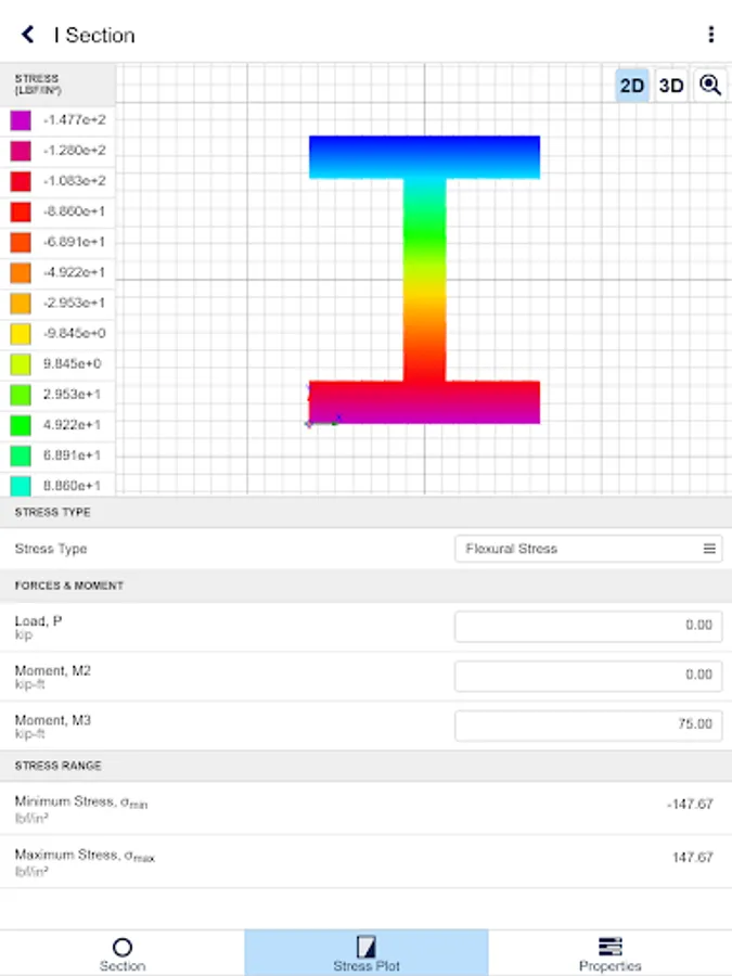 CSiStress is an app that conveniently shows the stress plots and profiles in order to understand cross-sectional behavior caused by axial loads, bending moments, shear forces and torsional moments of more than 25 shapes.