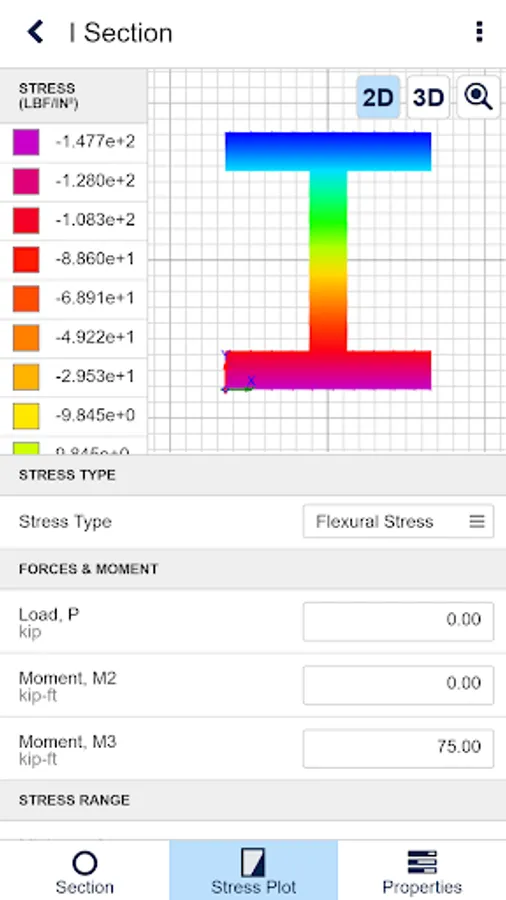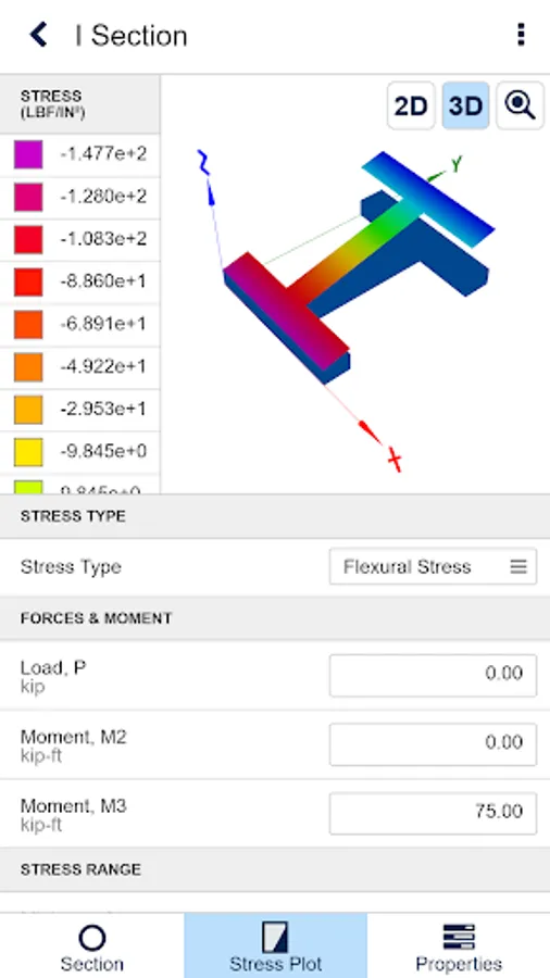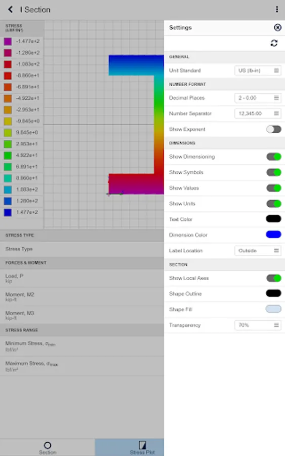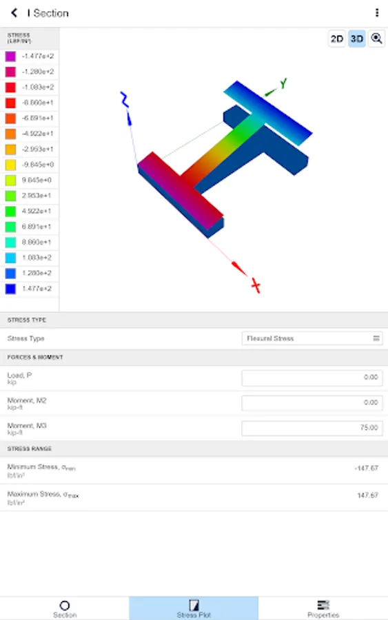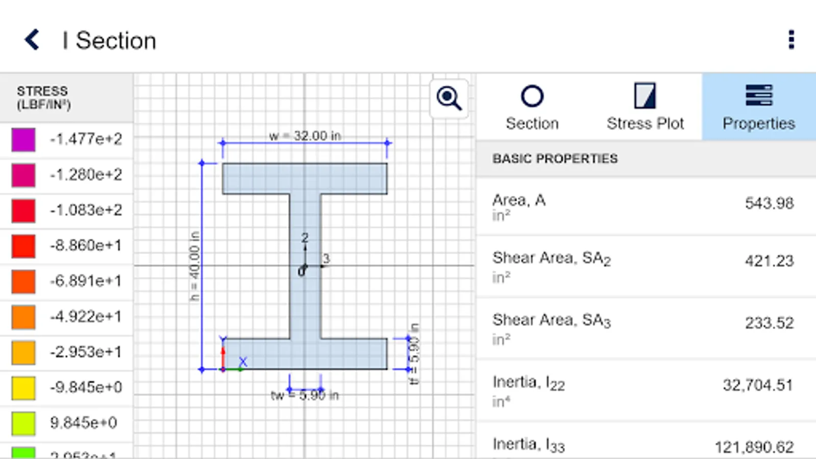 CSiStress is an app that conveniently shows the stress plots and profiles in order to understand cross-sectional behavior caused by axial loads, bending moments, shear forces and torsional moments of more than 25 shapes.