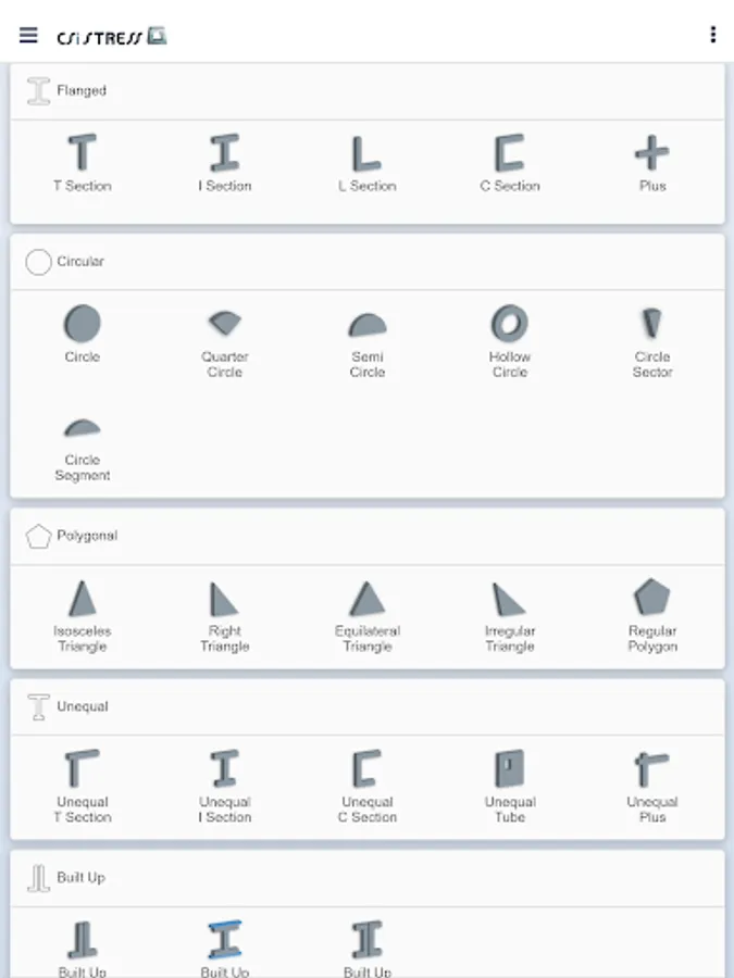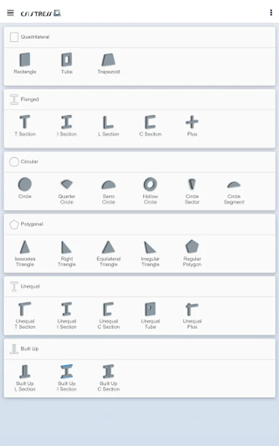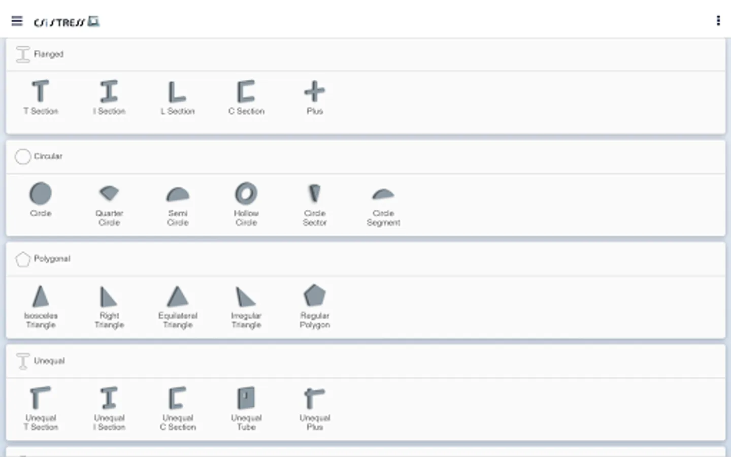 This app is tailor made for engineers and consultants who need to quickly check the stress properties for specific loading conditions, as well as for students and teachers who want to study the cross-sectional behavior caused by various loads.
