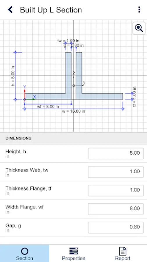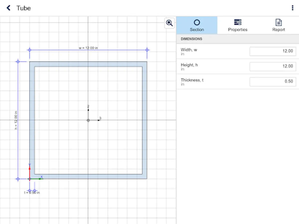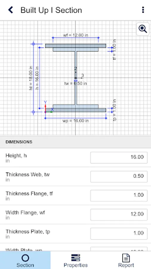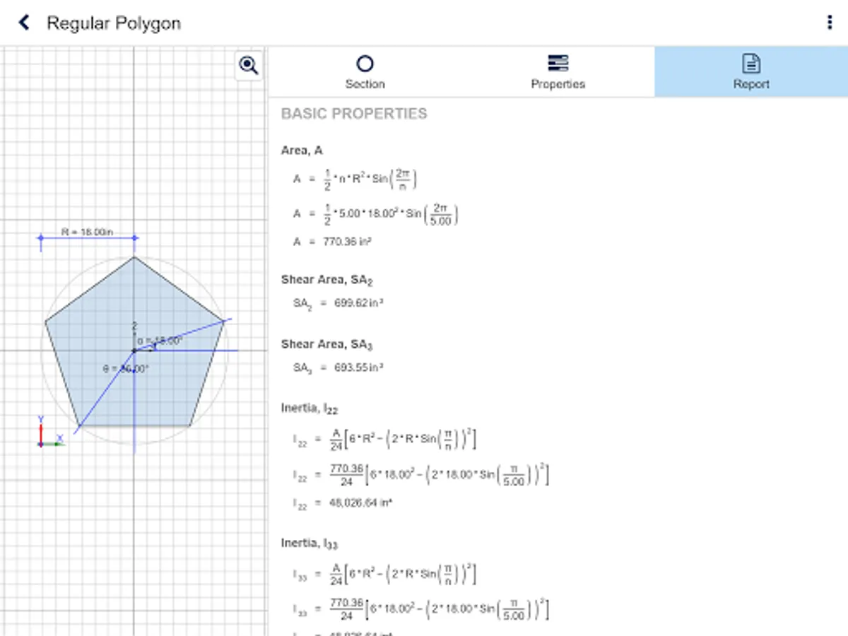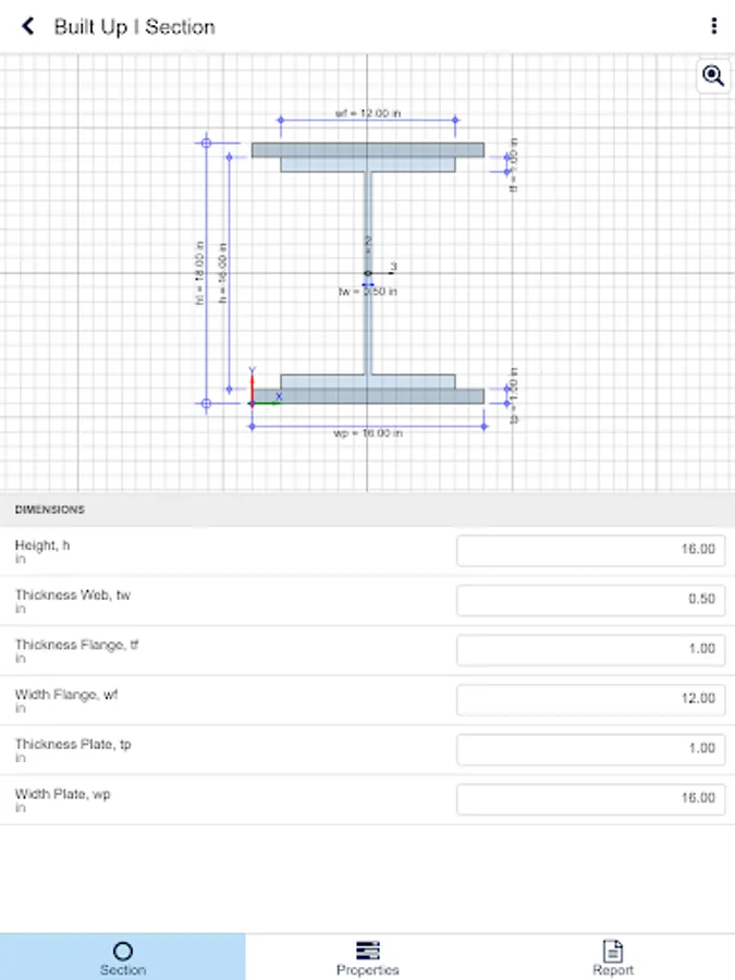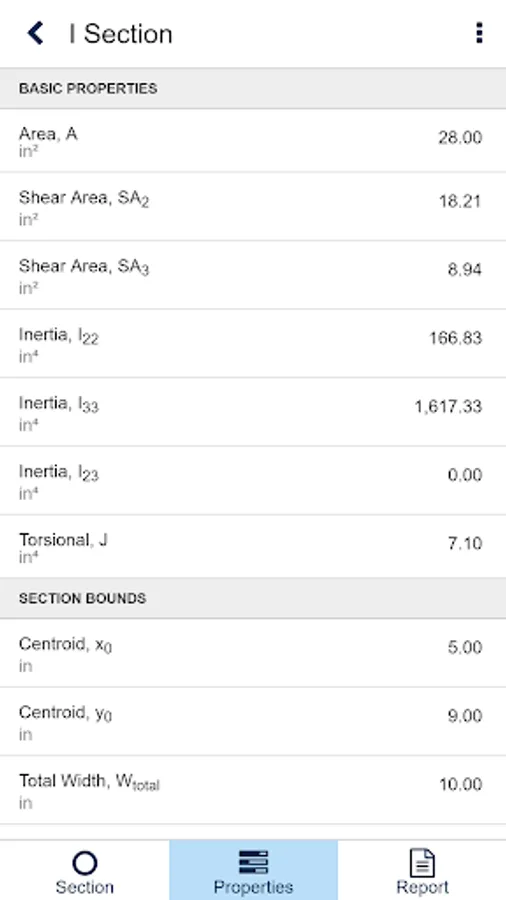 • Basic properties: Area, inertia, radius of gyration, section modulus
