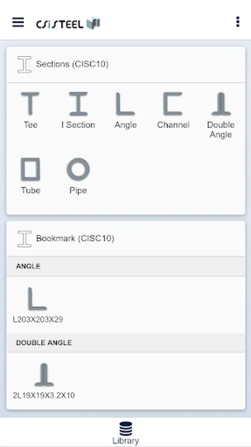 CSiSteel features a comprehensive library of steel sections and their structural properties.