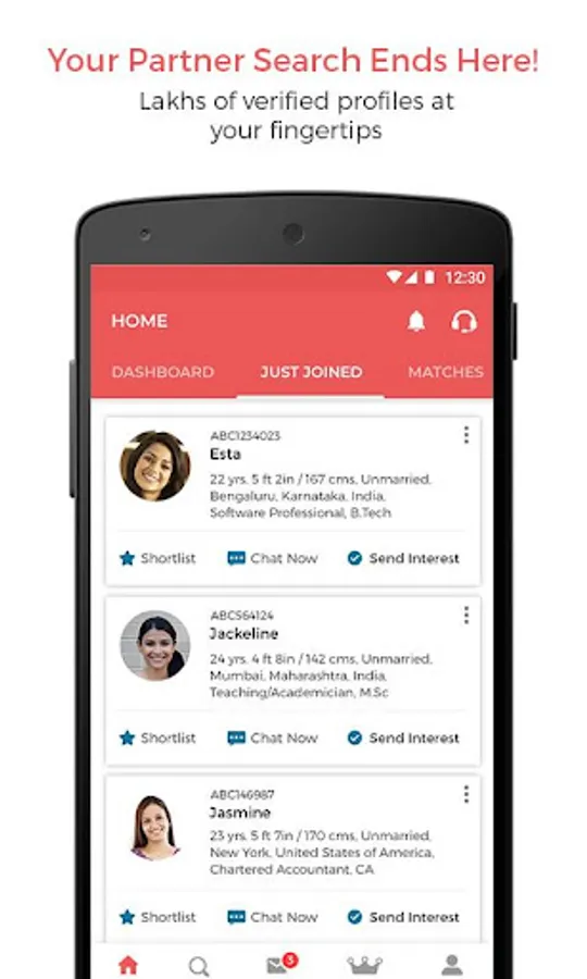 - Create your profile and set up your partner preferences based on age, location, education, and community.