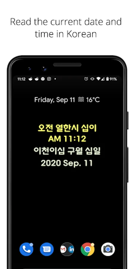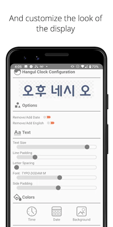 Hangul Clock is a widget that translates the date and time into Hangul/Korean text according to native Korean and Sino-Korean number systems and format.