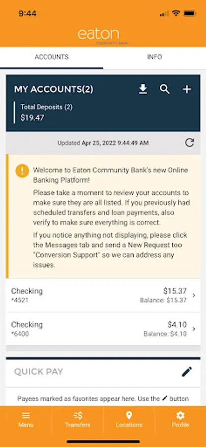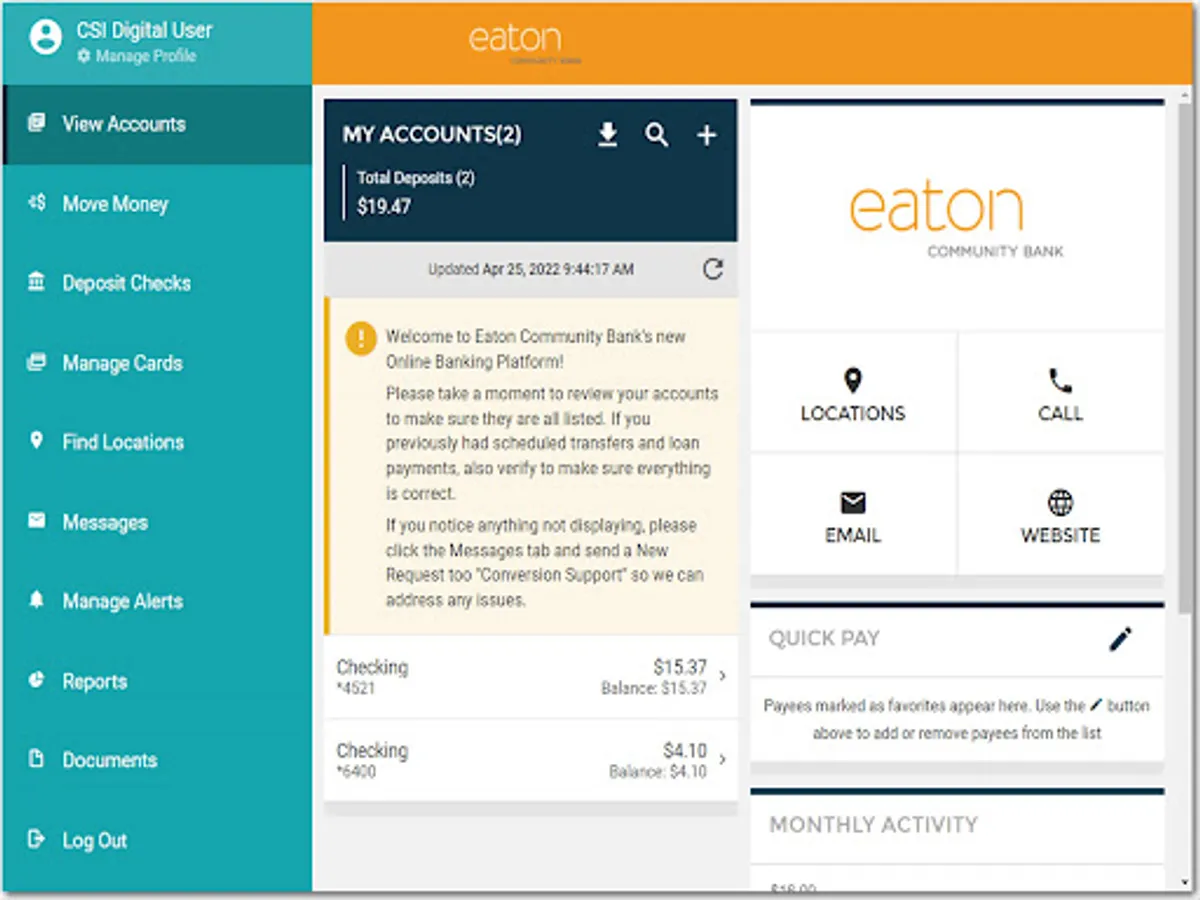 Start banking wherever you are with Eaton Community Bank for mobile banking! Available to all Eaton Community Bank consumer online banking customers, Eaton Community Bank mobile allows you to check balances, make transfers, pay bills, make deposits, and find locations.