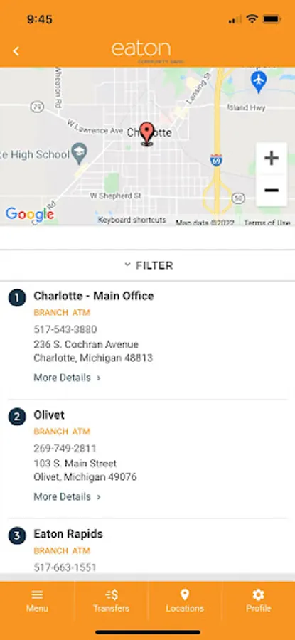 - Find nearby Branches and ATMs using the device’s built-in GPS. Additionally, you can search by zip code or address.