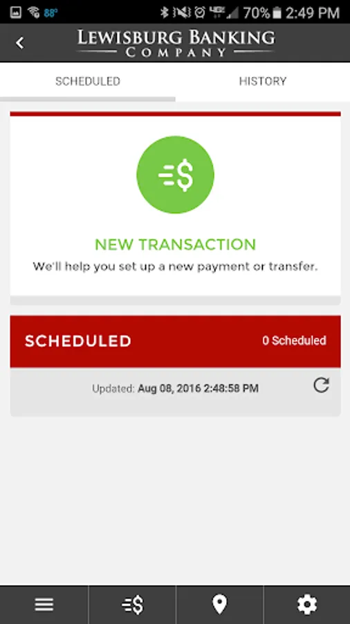 Lewisburg Banking Company mobile banking gives you immediate and secure account access from your mobile device. Manage your money anytime, anywhere with mobile bill pay and transfer funds. Stay alert with account activity with customizable account alerts. Lost or stolen debit card? Turn your card on or off with our convenient Manage Cards feature. Take advantage of all of these options and more by signing up for MyLBC E-Banking now.