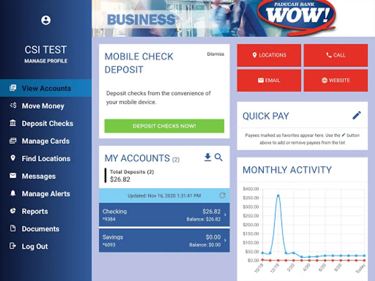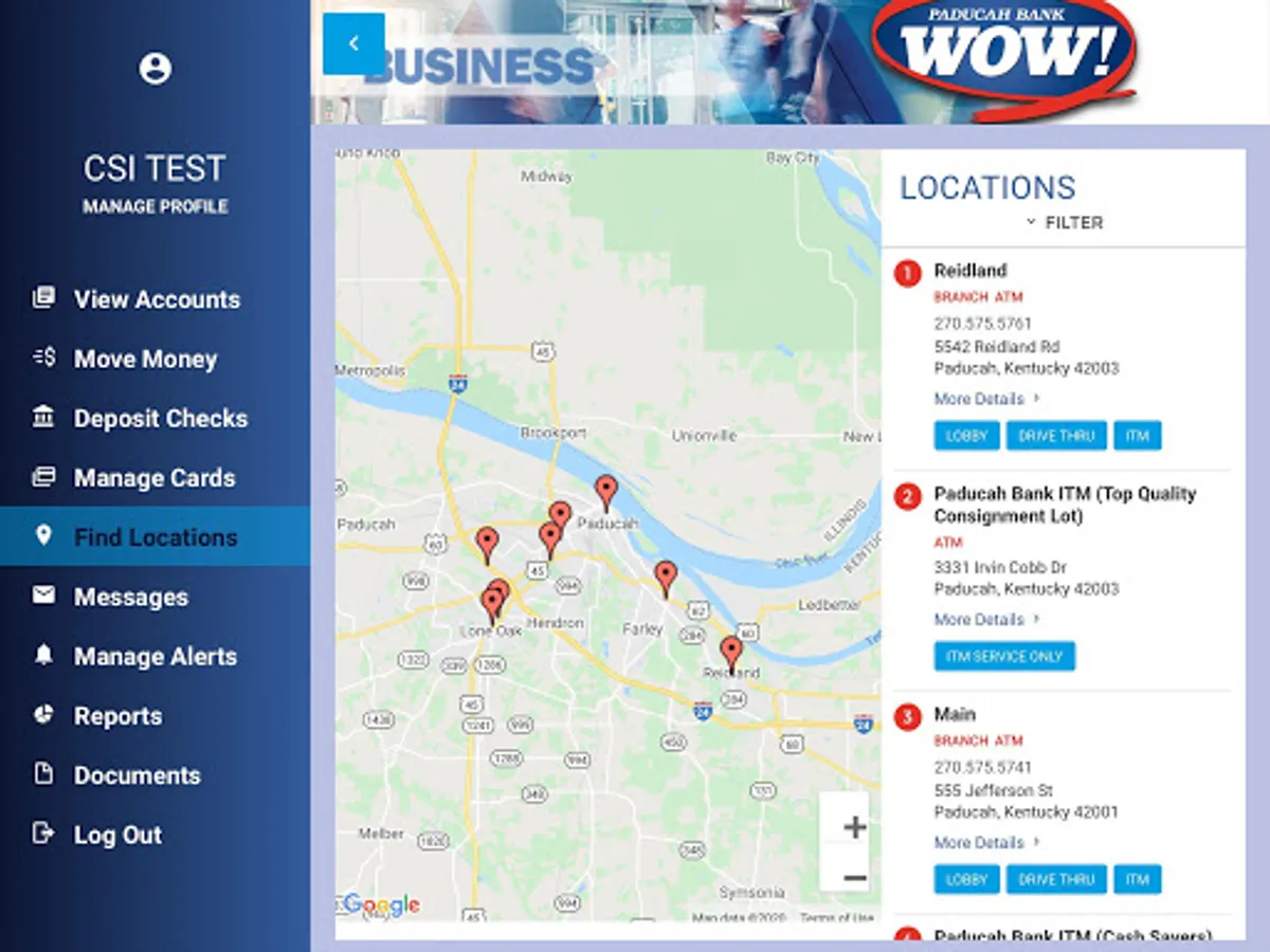 Paducah Bank’s Business Mobile app is a great way to bank on the go! It’s free and provides the convenience of turning your mobile device into your own personal “WOW” banker. Enrollment is quick and easy for all Paducah Bank existing Internet Banking customers. If you are not a Paducah Bank Internet Banking customer, simply call or stop by one of our Banking Centers to get started! You can also visit us at www.paducahbank.com to find out more!