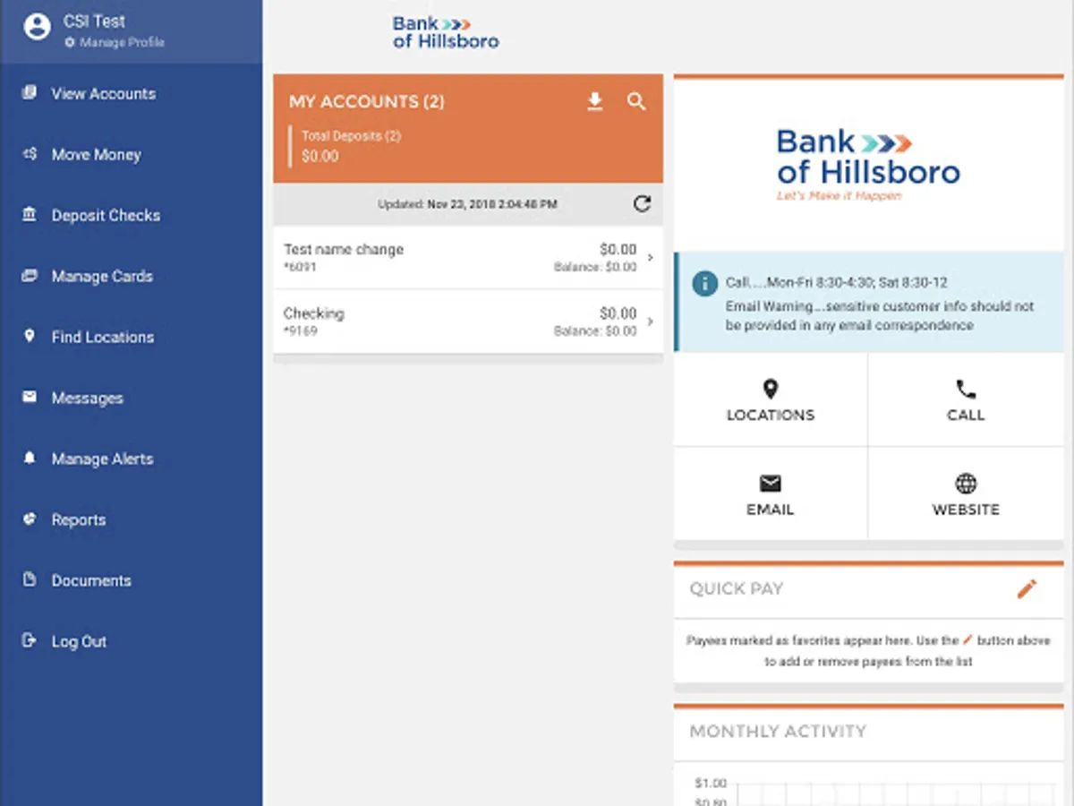 Bank of Hillsboro II Mobile banking gives you immediate and secure account access from your mobile device. Manage your money anytime, anywhere. Stay alert with account activity with customizable account alerts. Take advantage of all of these options and more by signing up for Bank of Hillsboro Mobile Online Banking now.