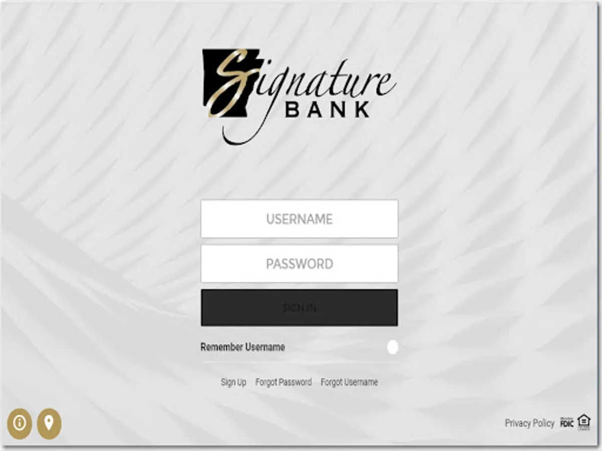 Signature2go is available to all Signature Bank of Arkansas account holders. If you are currently enrolled in our standard mobile banking services, you can begin using the App immediately; just access your accounts using your existing Signature Online Banking username and password.