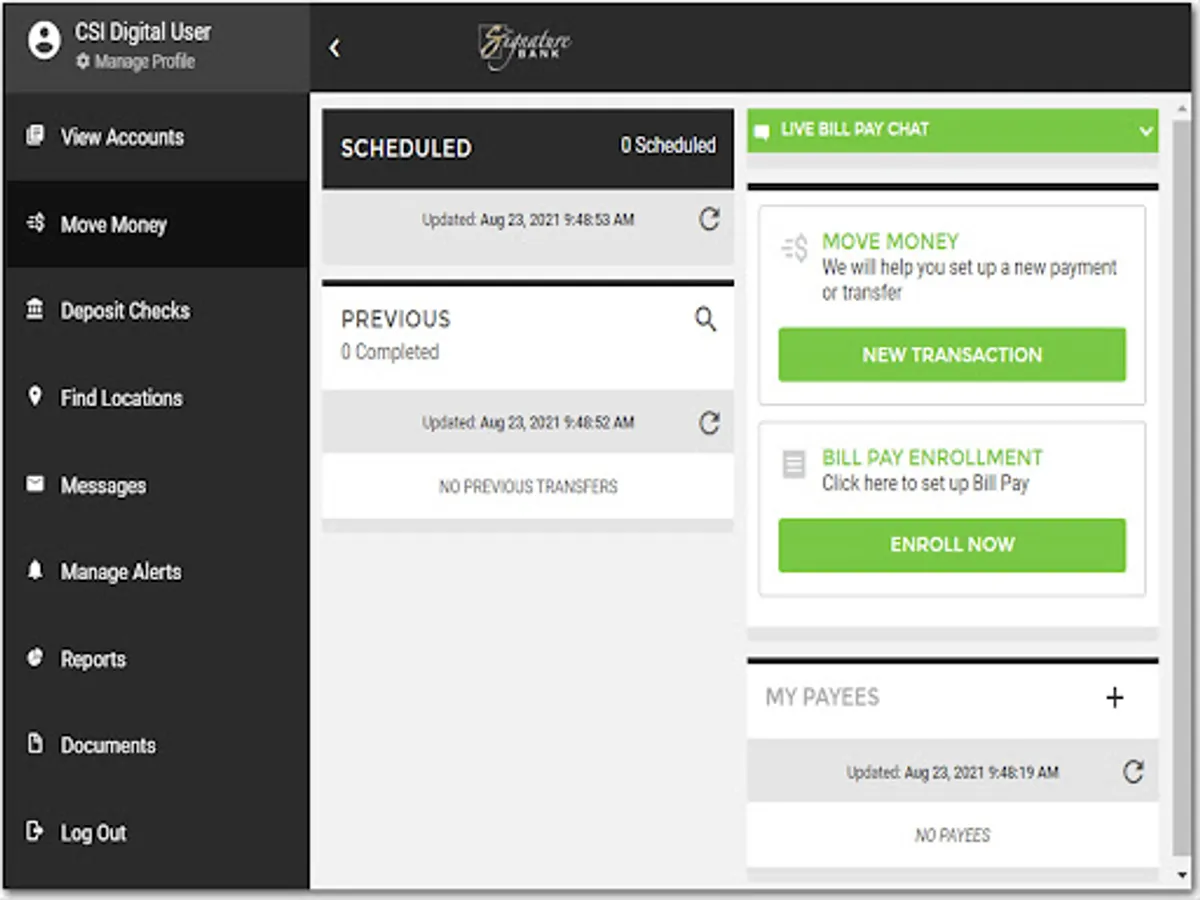 If you are not currently using our Signature online account services go to www.signature.bank and register as a new user. Don’t forget to install the App on an eligible smart phone and you are ready to begin using Signature2go mobile banking!