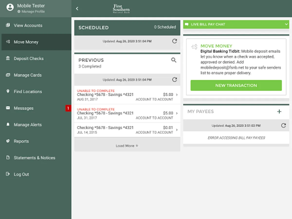 Turn your mobile phone into your own, personal First Southern banker! First Southern National Bank’s Mobile App allows you to manage your accounts from your mobile device quickly and securely – anytime you’d like.