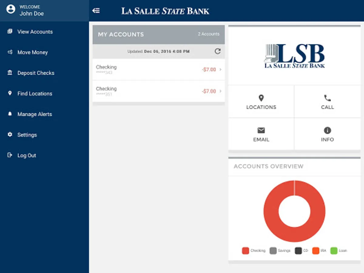 LaSalle State Bank’s mobile banking gives you immediate and secure account access from your mobile device. Manage your money anytime, anywhere. Stay alert with account activity with customizable account alerts. Take advantage of all of these options and more by signing up for LSB’s Online Banking now.