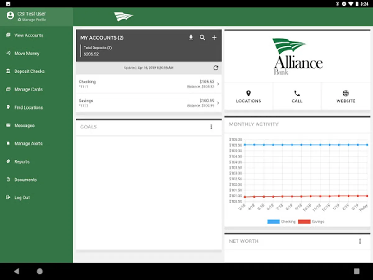 - Do the expected like check balances, view transactions and transfer funds between your Alliance Bank accounts.