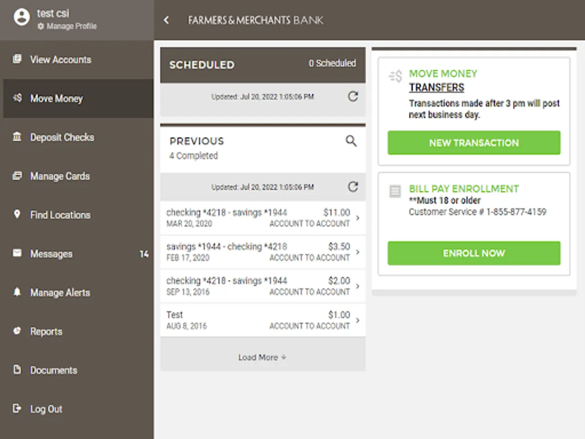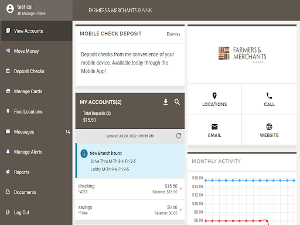 To enroll in Mobile Banking, you must be a Farmers & Merchants Bank customer. Your mobile carrier’s text messaging and data access charges may apply. Read the Mobile Banking Terms and Conditions for more details.